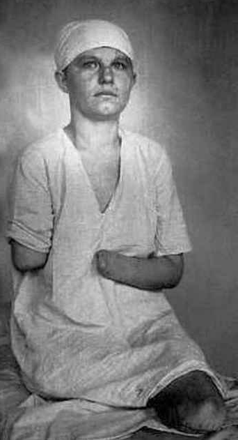 Чудом, случайно, русские разведчики, возвращаясь к своим из немецкого тыла, услышали ее тихий стон. Тело девушки пришлось выбивать финками из замерзшего кровавого месива. Десять дней врачи боролись за ее жизнь, но обмороженные руки и ноги спасти не удалось — началась гангрена.
