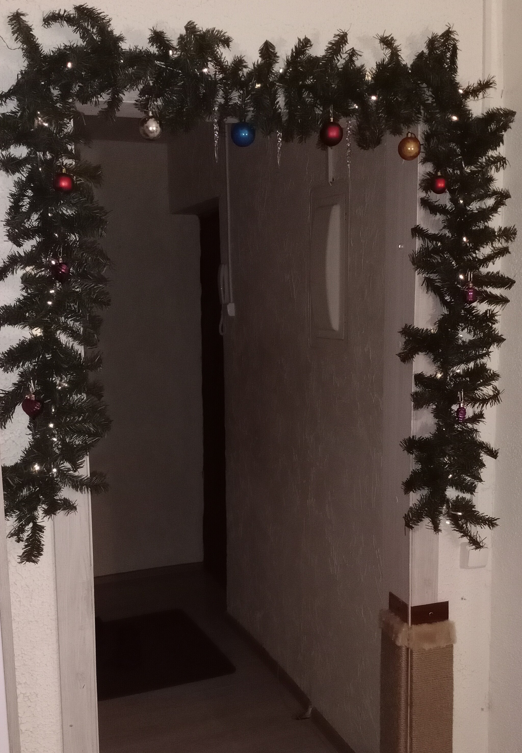 Уважаемые пикабушники. Помогите. Зла моего больше не хватает. Буквально на днях в комментариях восховляла, как хорошо иметь елочную гирлянду, вместо елки. Да гори она синим пламенем! Эта @ботня не держиться совсем! Ни на крючках (лепятся на двусторонний скотч) ни на горячий клей (он остывает, и все отваливается к х@рам). Ни на скотч (оу ну этот продержался аж неделю). Это все во первых. Во вторых-эта херня не для украшения дверных проемов в квартирах брежневках. 3 недели этого гемороя я проходила этот дверной проем боком. Да ок, я не супермодель, мой размер, скорее, равен,любите меня такой, какая я есть. Но блин, товарищи, даже моя клиентка размера S в одежде, походила бочком. В общем что. Это не для классических квартир хрущ/бреж. Ну и наверно даже в некоторых новостройках будет тесно с этим вариантом украшения.