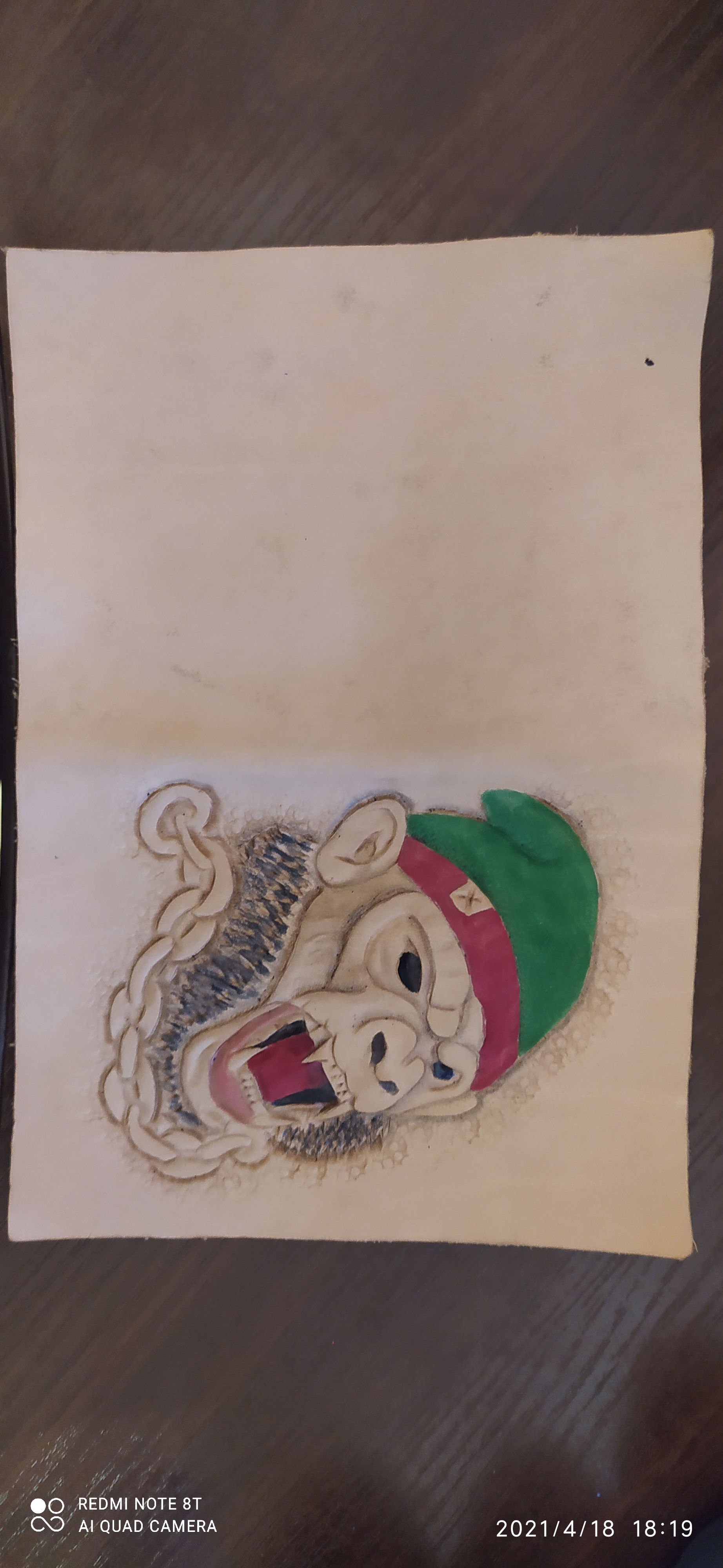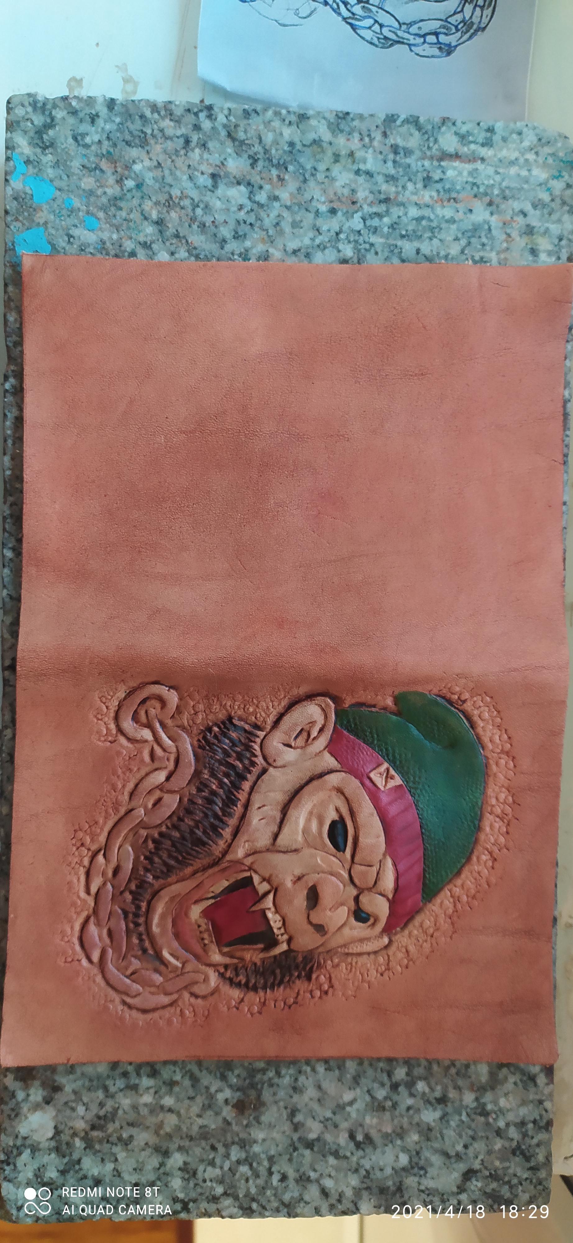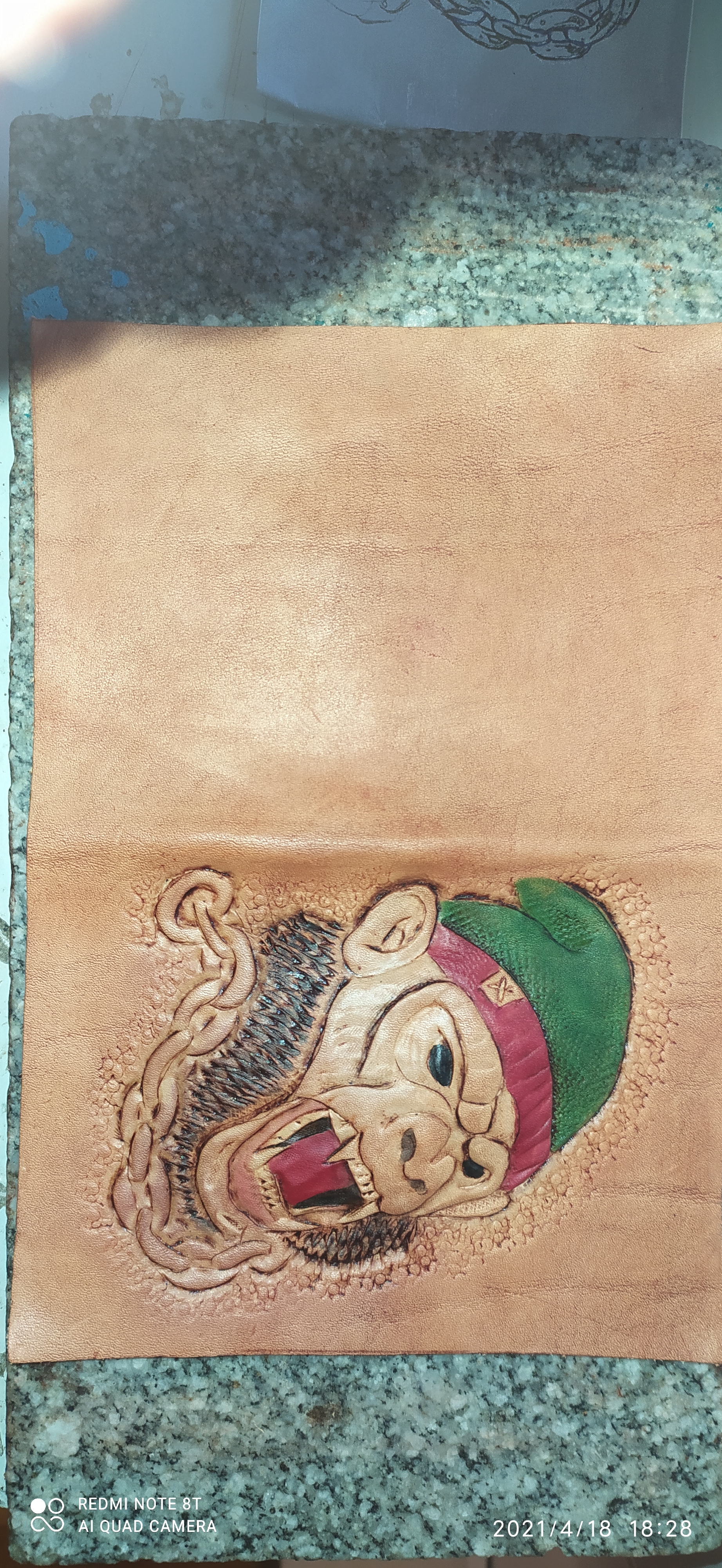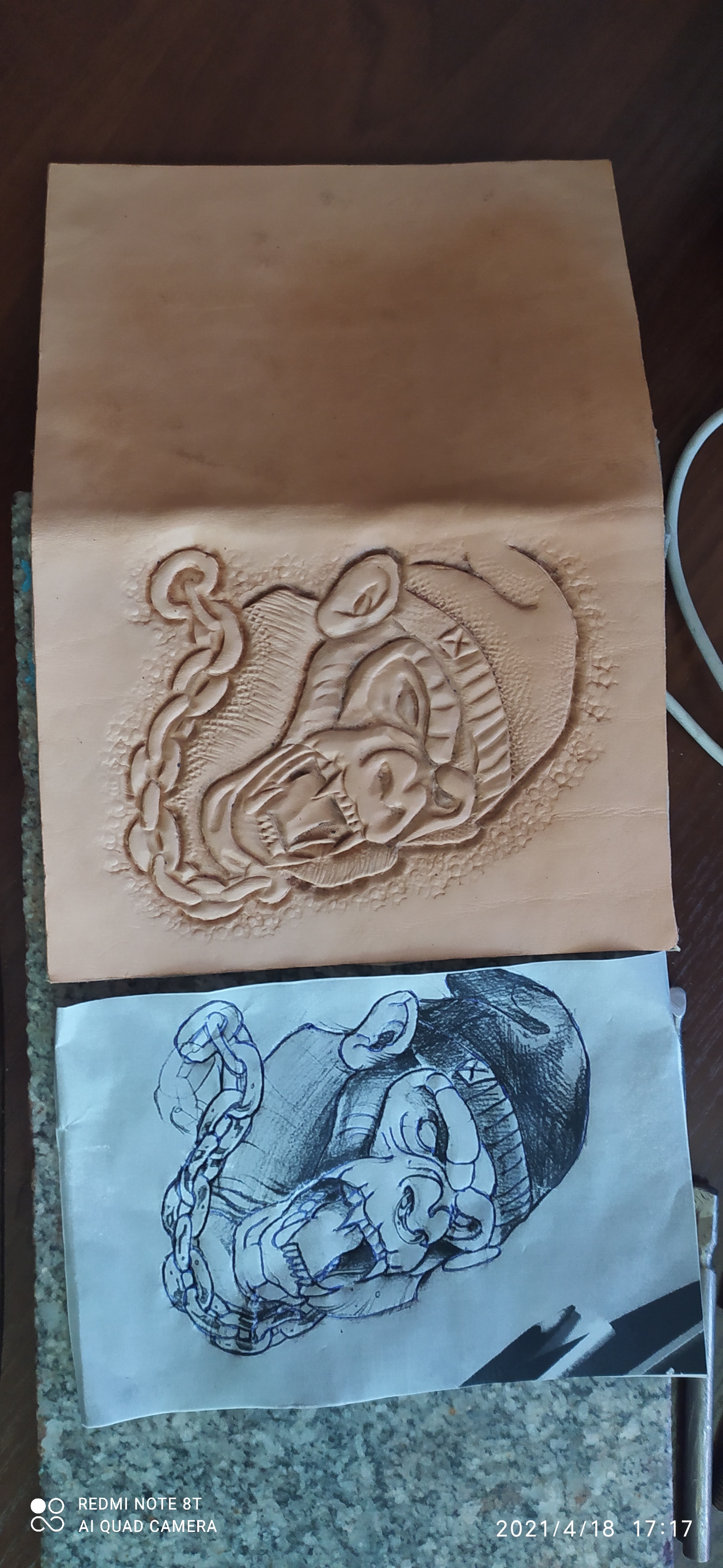 Доброго времени суток, проба кожи я так понимаю смешанного дубления, рисунок очень плохо переводиться. Кожа 1.6 мм, краски спиртовые проникающие kenda, финиш от фибингс.