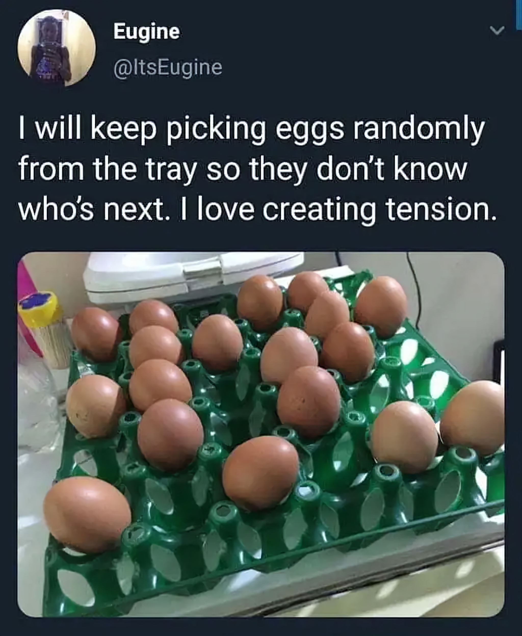 9 Kuchka70 Bond. Vagabond. Перевод и переводчики Злодейство в чистом виде 3 месяца назад Буду продолжать брать яйца из ячейки в случайном порядке, чтобы они не знали, кто следующий. Обожаю накал страстей. Яйца Выбор Напряженность Скриншот 2 1 1 Ещё 0