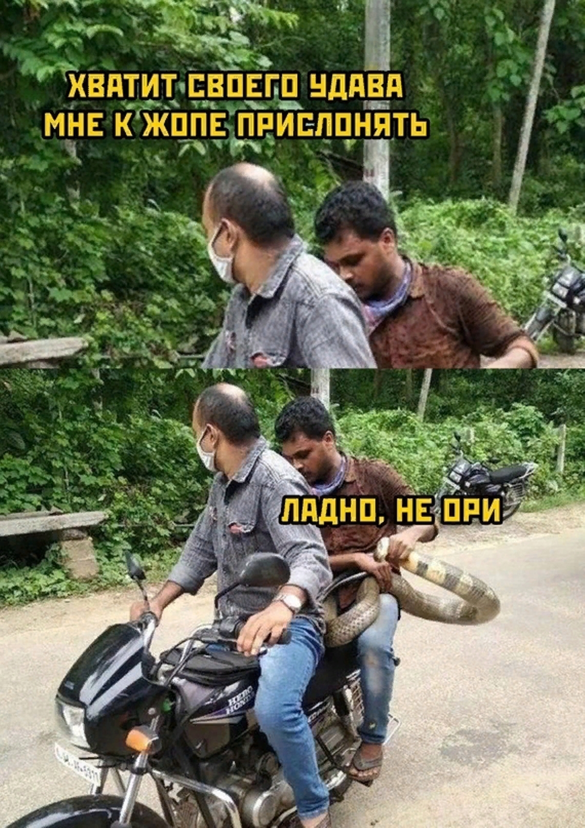 4343 stalewar13 Специфический юмор Юмор Змеелов 2 года назад Мотоциклисты Картинка с текстом Парни Юмор Ирония Змеелов Змея Королевская кобра 60 3 2 1 Ещё 0