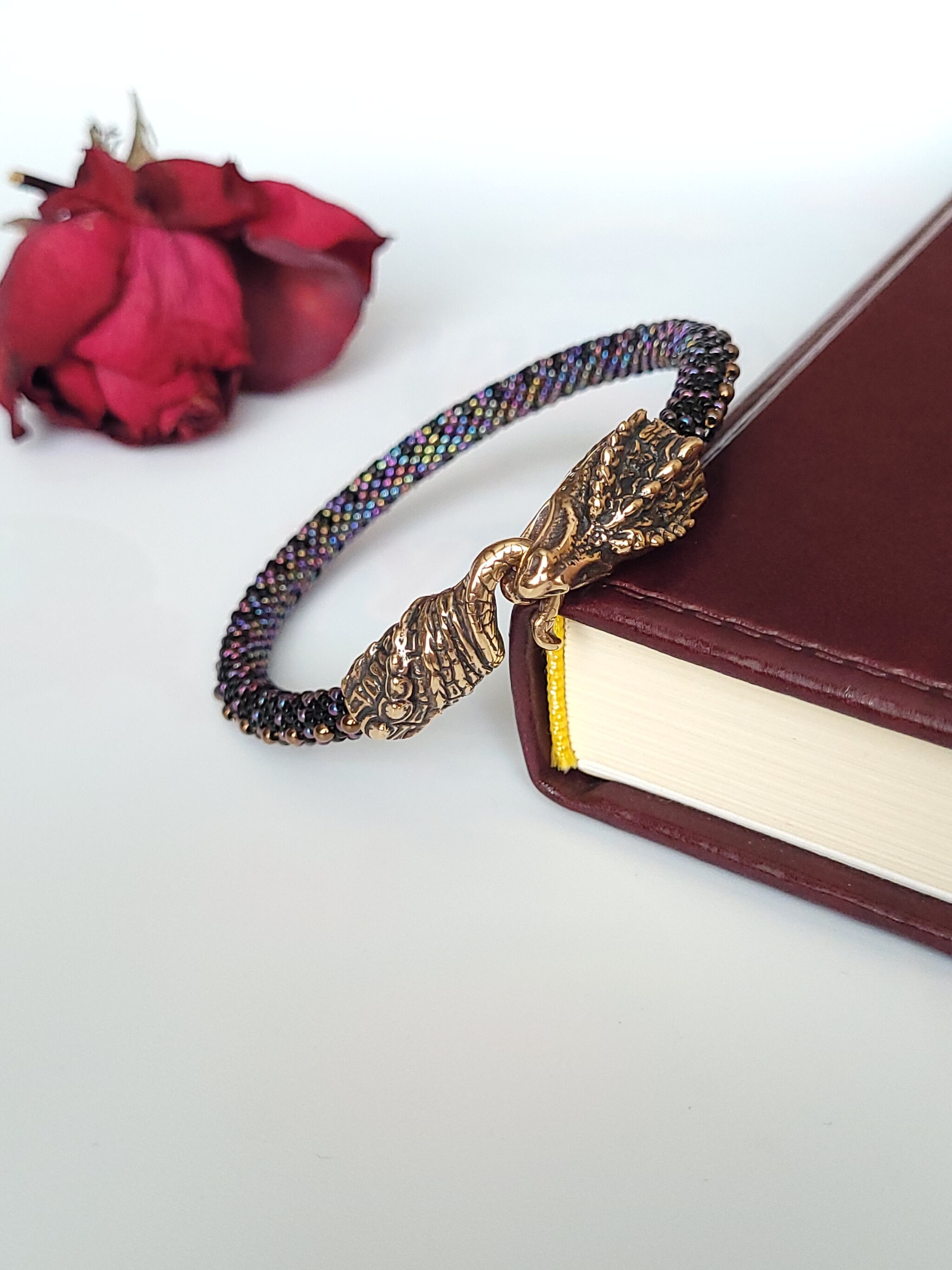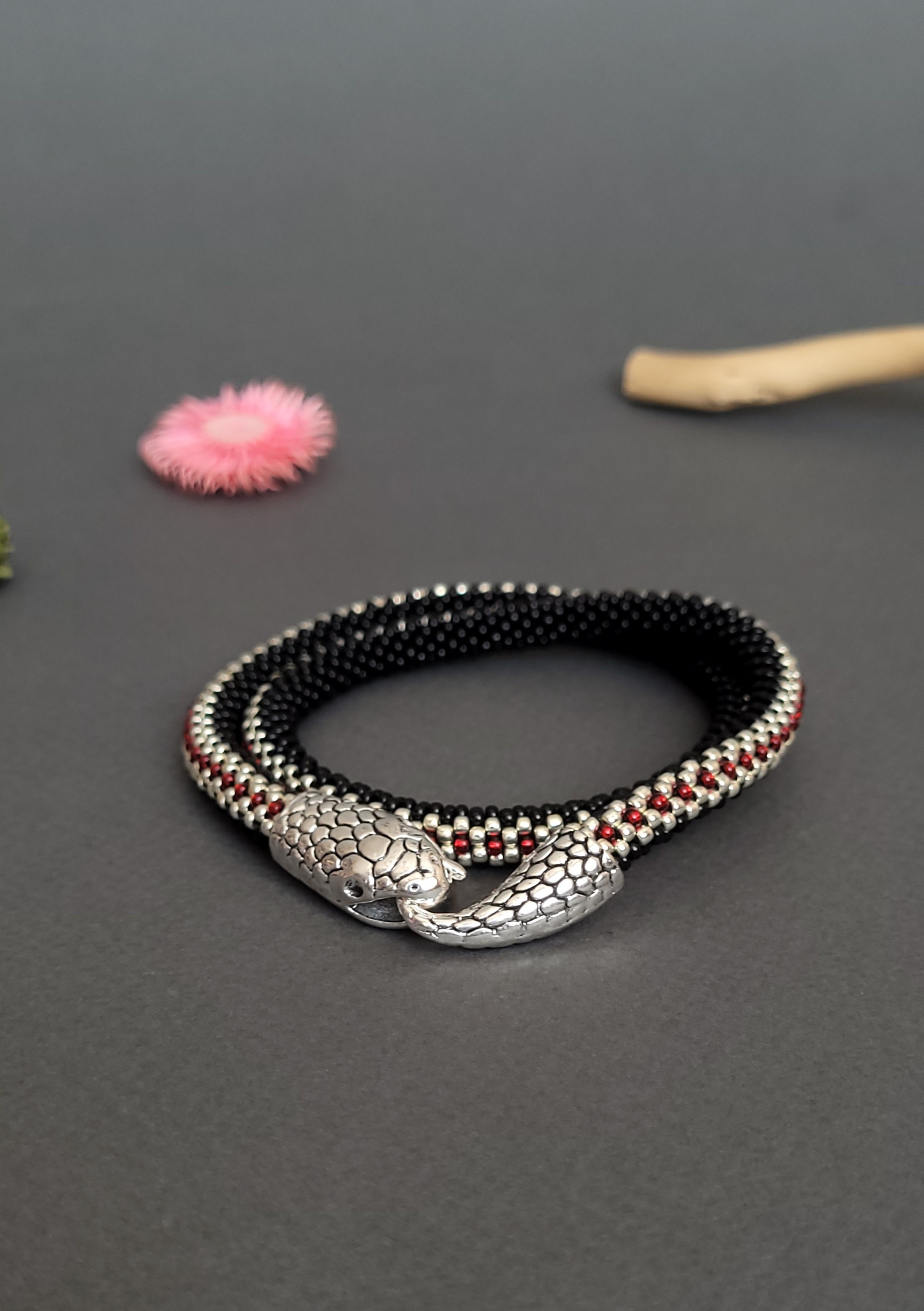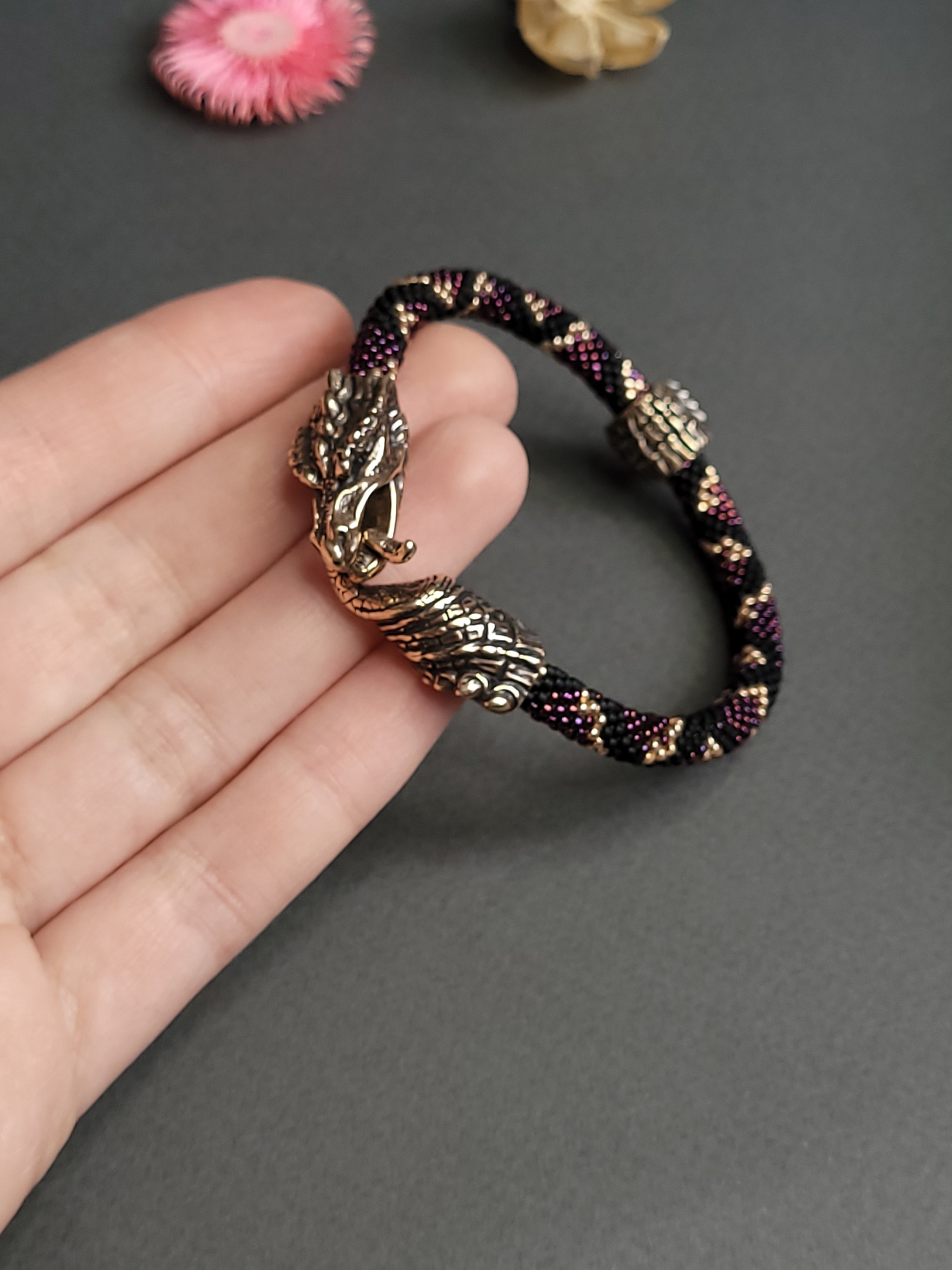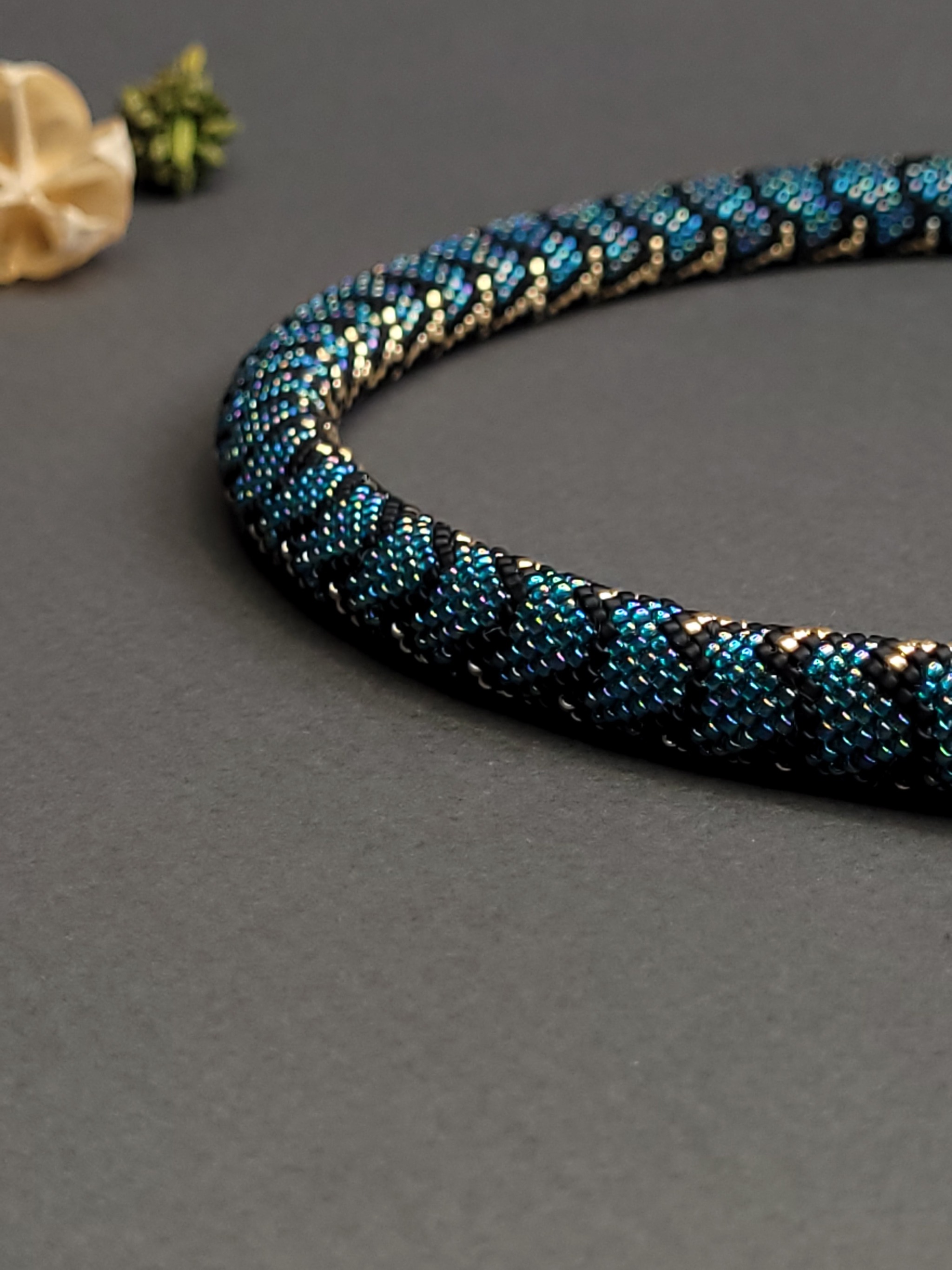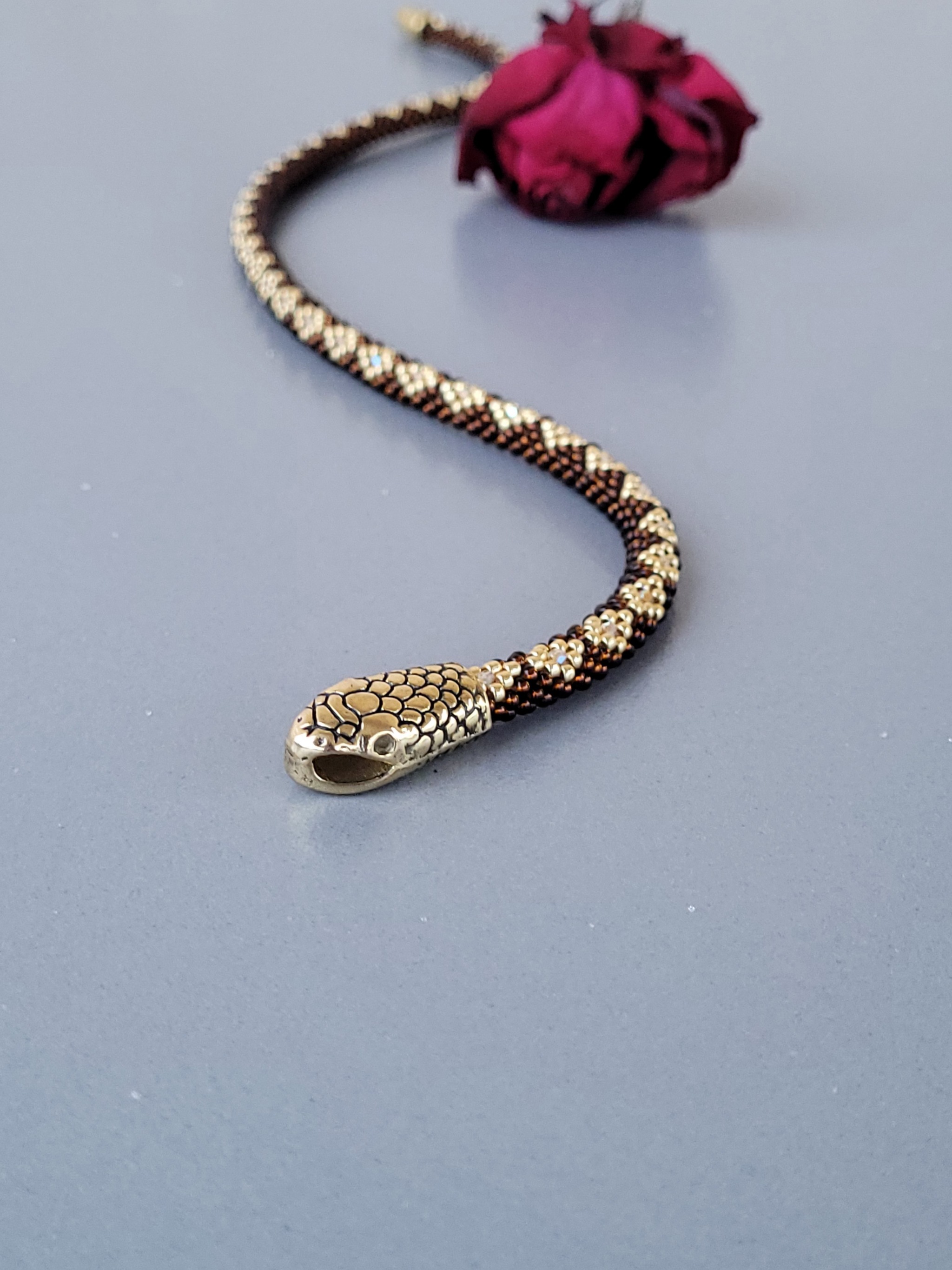В последнее время я только и делаю змей, ну иногда еще и драконов с тиграми. Это колье вяжется столбиком крючком с бисером. Я использую армированную нить 70лл и бисер тохо 15/0.