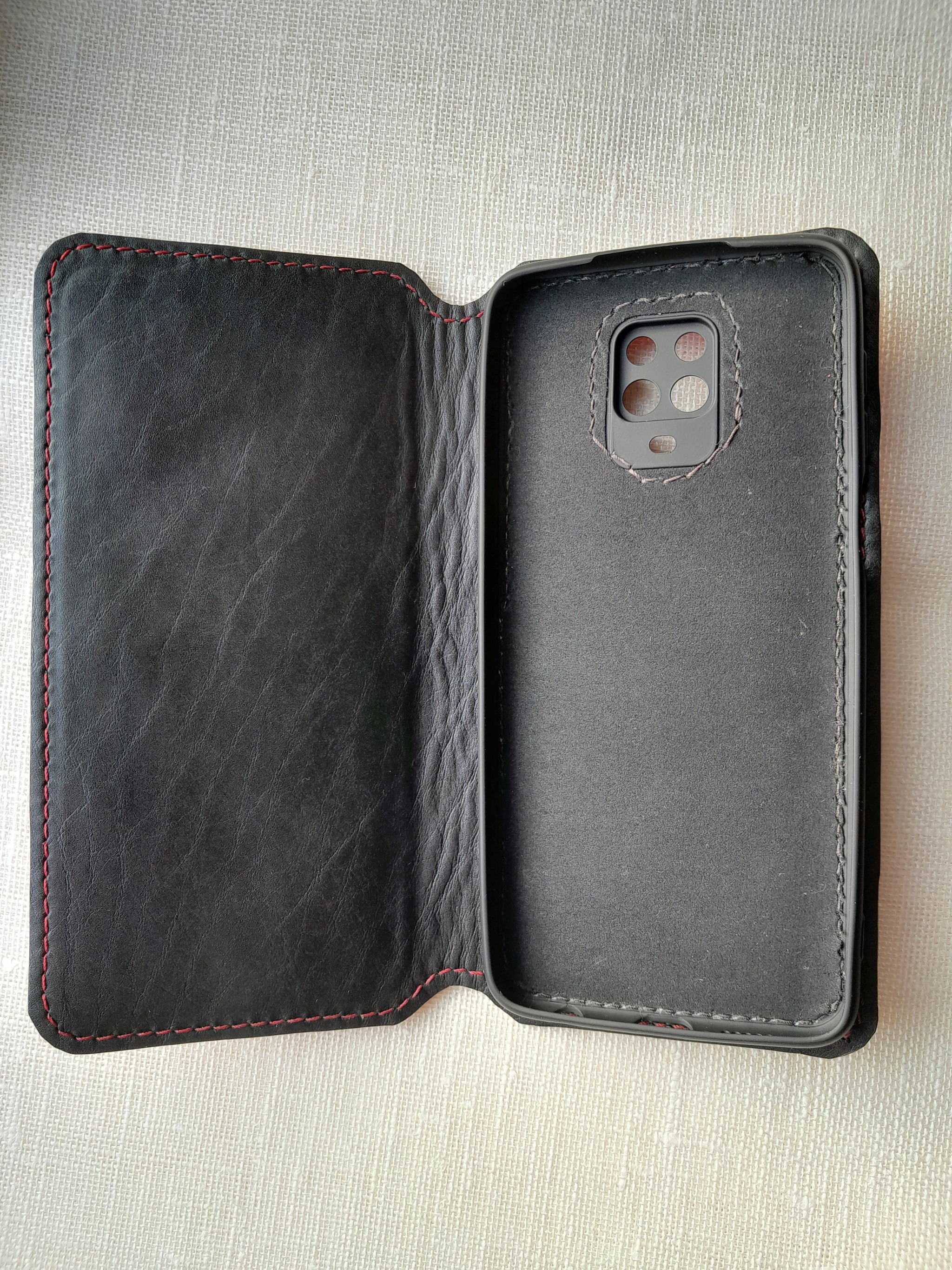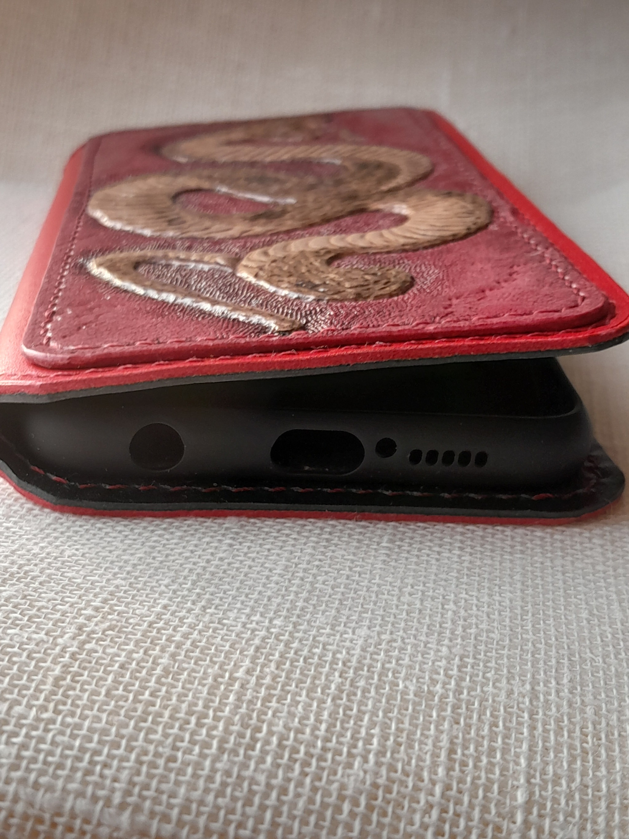 Пока чехол новый, немного неплотно прилегает при закрытии телефона, но со временем кожа разработается.