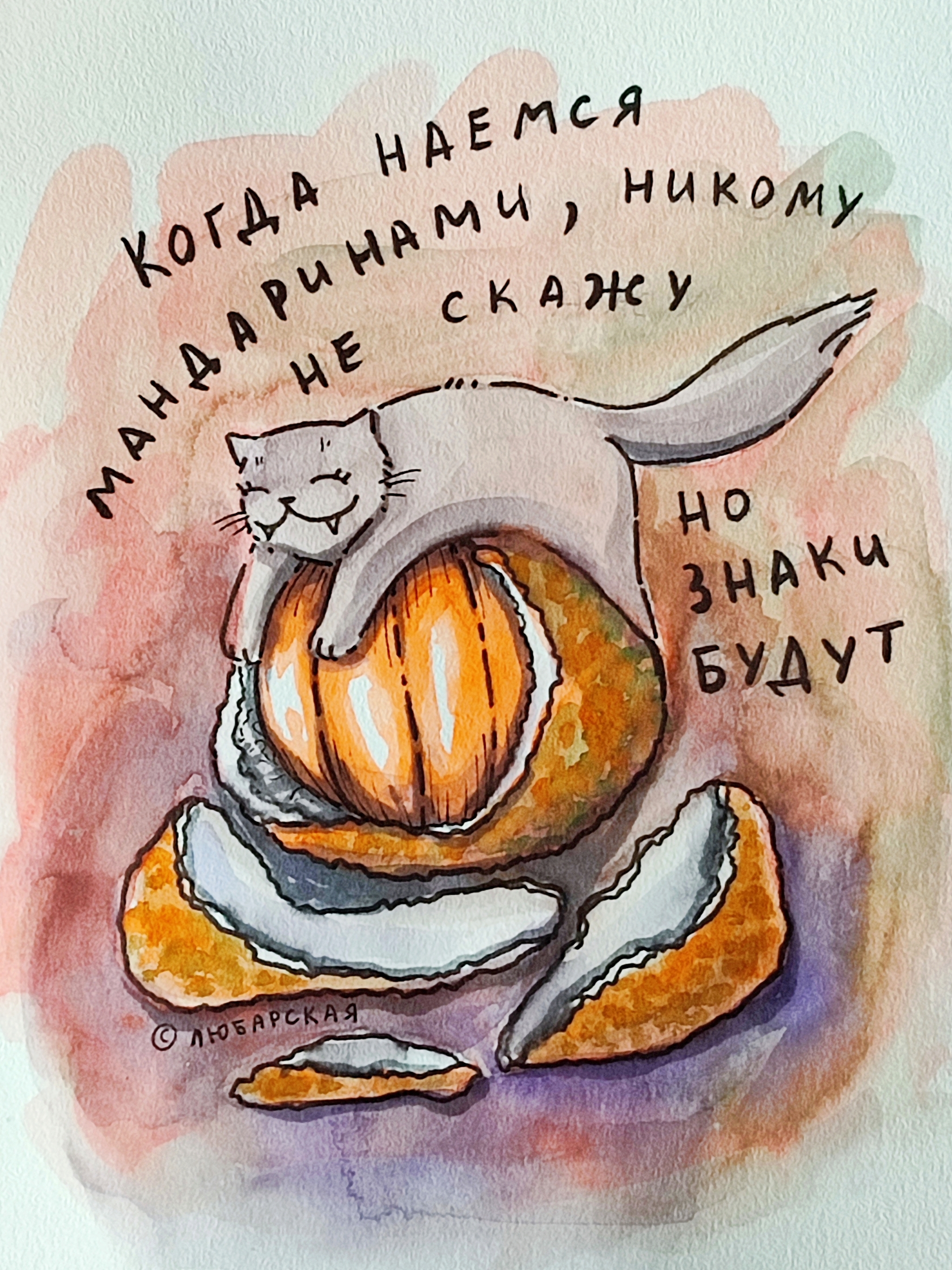 И из всего этого вот как-то сам собой вырос мой кот. Не с нуля, а из этих впечатлений, которые в голове осели. Получился свой, но с памятью о том хомяке на мандарине и той фразе. Вот и вся кухня.