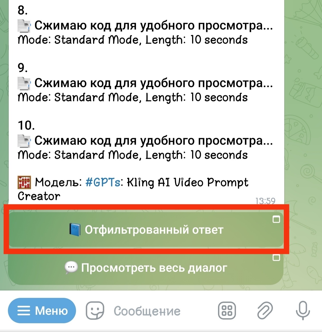 После генерации нажимаем кнопку «Отфильтрованный ответ»