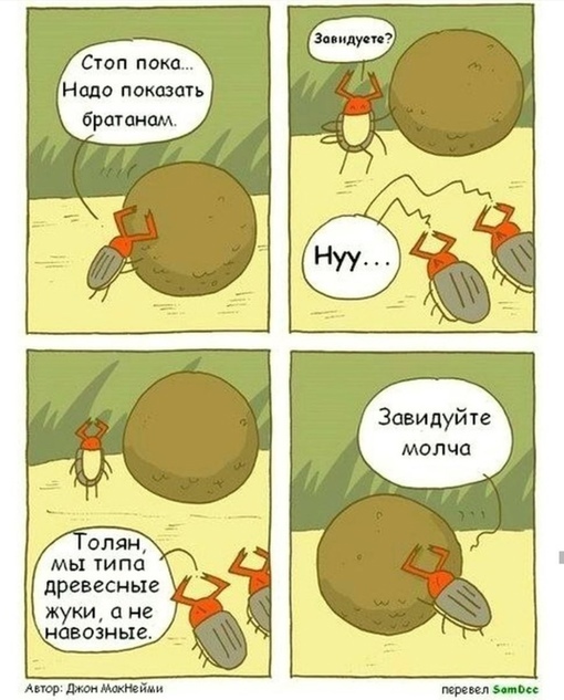 мало того, что навозники толкают шар вверх ногами задом наперед, так еще и какие то олени вместо навозников. комикс говно. про кодеров смешнее