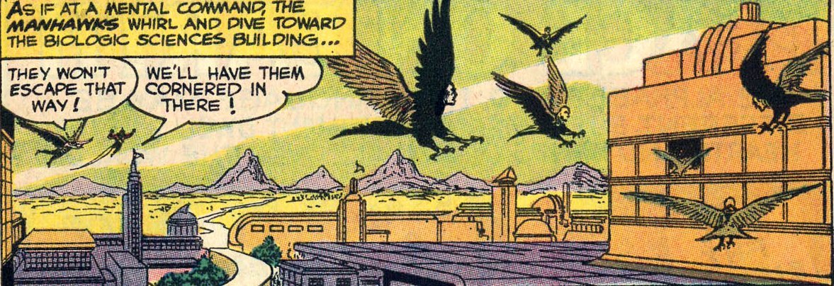 Человекоорлы наводят в зданиях бардак, пытаясь что-то найти. Хоукмэн и Адам Стрэндж понимают, что лучше будет как можно скорее с крылатыми бестиями разобраться. Начинается воздушный бой – двое героев против группы тварей. И герои выходят из боя победителями. Захваченный в плен Человекоорёл рассказывает занимательную историю – внезапно все Человекоорлы, томящиеся в клетках на Танагаре, были облучены странной радиацией и стали сверхсильными и сверхумными. Дабы отпраздновать это событие, они решили переправить планету в другой космический сектор – «украсть» её.