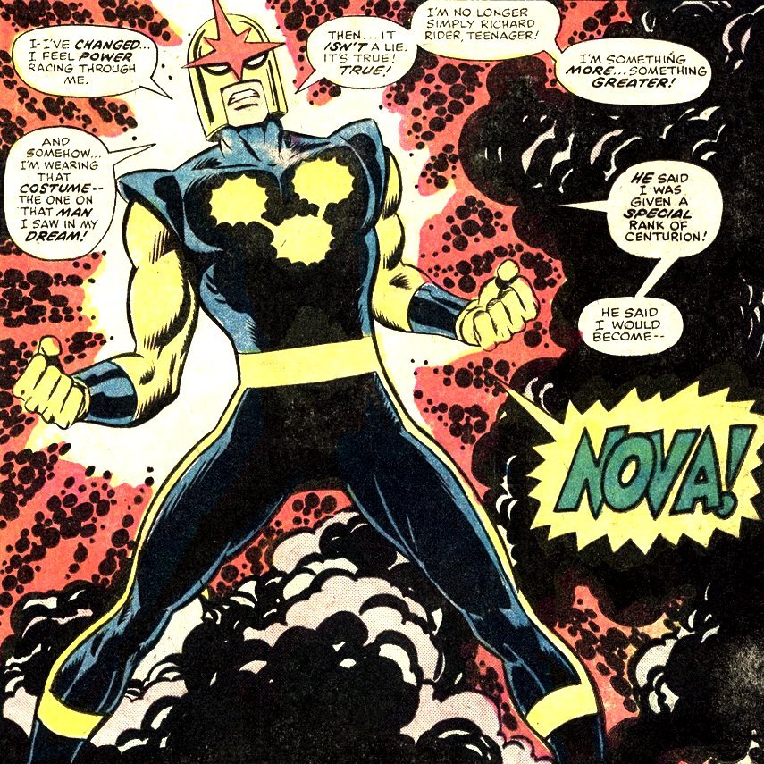 Ричард возвращается в школу – но всё так же не может забыть этот странный сон с этим странным центурионом, звёздами и галактиками. И внезапно его силы начинают проявляться. Начинается всё с того, что ответ на сложную математическую задачу сам возникает у него в голове. А уже потом, дома, Ричард буквально взрывается энергией. Он чувствует пульсирующую силу, наполняющую его тело – и его домашняя одежда превращается в фантастический костюм с золотым шлемом, а во лбу звезда горит. Теперь он – не просто Ричард Райдер – теперь он Центурион Нова-Прайм! Ну или просто Нова.