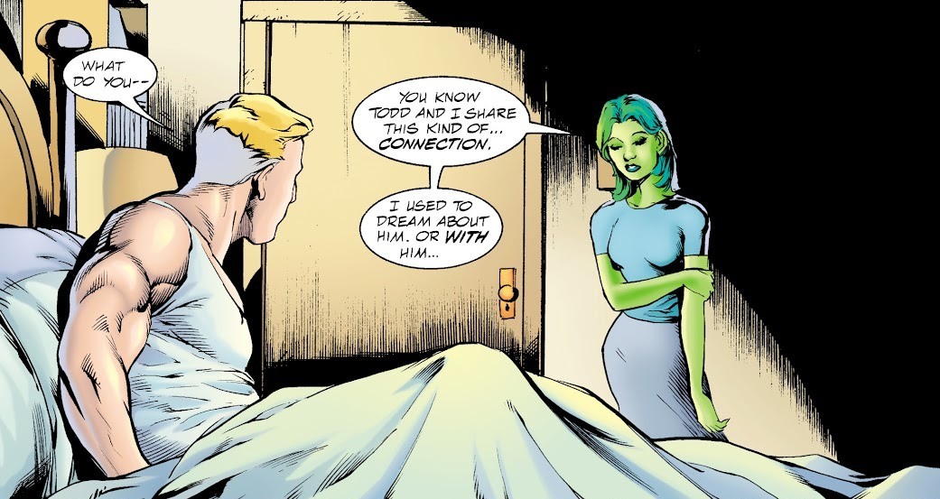 А где-то на другом конце города Алана Скотта, первого Зелёного Фонаря, пострадавшего в битве с Обществом Несправедливости и Джонни Сорроу, навещает его дочь (этот комикс вышел до того, как Алана Скотта сделали юным геем). Алан печалится о смерти сына, Тодда, носившего геройское (а порой и злодейское) прозвище «Обсидиан» и умевшего управлять тенями. Но дочь Алана, Дженни-Линн Хейден, сообщает, что Тодд жив. У неё всегда была телепатическая связь с братом. Тодд поддерживал её, всячески помогал – а теперь каждую ночь является к ней в кошмарах. Видать, подчиняющаяся ему тьма обволокла его душу.