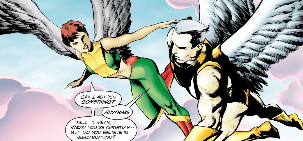 А пока одни герои утешают друг друга, а другие клянутся быть решительнее и расправляться со злодеями серьёзнее (Крушителю Атомов надоело нежничать), Кендра Сандерс, распсиховавшаяся Орлица, встречает неожиданного собеседника. Зауриил, ангел и бывший участник Лиги Справедливости, пришёл (ок, прилетел) с ней перетереть за жизнь и за любовь (его выперли из Рая за любовь к смертной женщине). Однако тут Зауриил не на ту нарвался – Кендра, похоже, не верит ни в Бога (соответственно, и ангелов тоже), ни в любовь. Так-то Зауриил к ней и не цеплялся бы – просто увидел крылья, подумал, коллегу встретил. Обознался, бывает.