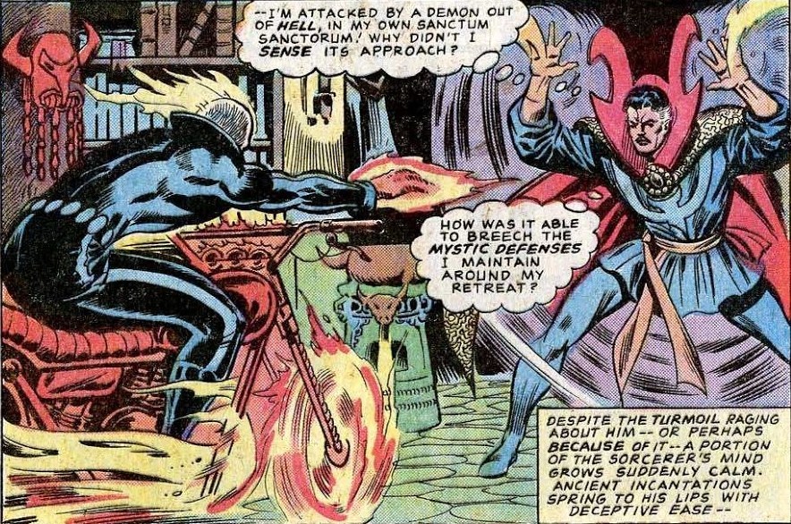 Приветствую всех, кто это читает. Есть в комиксах один приём, который практически никогда не подводит писателей: если одного значимого персонажа мало, их должно быть больше. Работает практически всегда, особенно если персонажи «на слуху». Этим приёмом воспользовались и для сегодняшнего комикса, Ghost Rider vol.2 #30 за июнь 1978 года, в котором Призрачный Гонщик столкнётся с Доктором Стрэнджем.