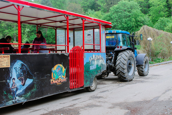 Мы пошли за указателями по лесной дороге в сторону крепости. Идти не так далеко, да и перепады высоты не очень серьезные. От подножья крепости ходит «паровозик», садиться в него мы конечно же не стали и пошли пешком!)