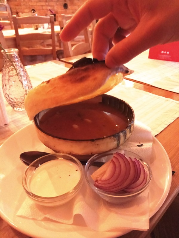 После прогулки в замке и в его окрестностях, зайдя на местный рынок сувениров, мы зашли пообедать чорбой. Радует то, что в Румынии цены на напитки и на первые блюда не зависят от местоположения ресторана и кафе. В любом туристическом месте можно зайти и скушать супчик за 10-14 лей.