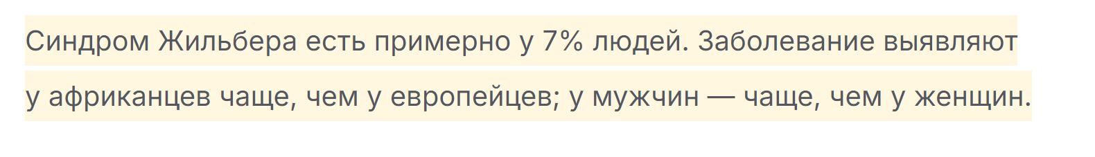 Всем здравствуйте! Хочу поделиться своей историей знакомства с Жильбером, может кому-то интересно. Мне уже 51 год и месяц назад, я, сдав генетический тест узнала, что у меня синдром жильбера 7/7. Шла я к этому моменту, можно сказать, всю жизнь. С детства была ооочень болезнена, чем я только не болела: воспаление легких с трекратным уколом пеницилина в сутки, это вообще моя любимая болезнь, наверно, с того момента как я начала ходить и потом пошло ЖКТ, весна и осень я в больнице лежу, в 10 лет начались страшные головные боли, какие-то крапивницы периодические, добавились проблемы с мочеполовой системой могла утром встать и быть просто раздутым опухшим шаром. В школе - бег для меня был адом, копка картошки тоже, все время хотелось спать. Но так как были проблемы с жкт, и была рекомендована диета, то я практически все время и была на диете и слушала от мамы вопли , что как я надоела ей со своими болячками. И вот все это понеслось рядом со мной во взрослую жизнь, добавились проблемы по женски: мастопатия, эндометриоз и непроходящая молочница, я не жила, а существовала в каком-то коматозе с вечно ватной головой, я ходила на всякие обследования, я ходила по экстрасенсам, у меня периодически желтели склеры, и в принципе я видела, что цвет кожи у меня был песочный по сравнению с другими, мне даже казалось землистый, я понять не могла что со мной, по обследованиям - ничего критического, билирубин иногда был выше нормы чуть чуть, мне советовали ограничить жирное, я самостоятельно сдавала анализы на гепатиты- ничего, на паразитов- ничего. Последние лет тридцать у меня холестерин выше нормы, могут АЛАТ и АСАТ подскочить, но тоже были советы - соблюдайте диету, я про себя думала - да я и так на диете. Просто с появлением во взрослой жизни алкоголя, конечно, не на постоянной основе, но холестерин стал расти. И еще добавлю, одну непонятную мне особенность, что, когда я заходила в жаркую сауну, у меня резко нарастал шум в ушах, начинала кружиться голова, и руки с ногами ватные становились, спасала только вода, мне срочно надо было выпить воды, чтобы не потерять сознание. Постоянная утомляемость и сонливость с подросткового возраста, периодически бессонные ночи, если был стресс или наоборот много впечатлений, а в 33 года целый год меня мучили панические атаки (это просто ужас ужасный), беспричинно начиналась неконтролируемая реакция. Сейчас у меня период менопаузы мучаюсь всем вышеперечисленным плюс "хондрос", суставные болячки и сердечко неритмично, опять иду обследоваться, потому что, кажется вот вот и не проснусь никогда, опять советы сдайте то,это, ничего серьезного, попейте витамины, а витамины сейчас какие рекомендуют всем на свете - витамин Е, витамин Д и в моем случае с холестерином - статины (при жильбере это все запрещено), я пытаюсь пить витамины, а мне еще хуже, в итоге - я обращаюсь на сайт "спроси врача", скидываю свои обследования, мне советуют дообследоваться -УЗИ того сего, я начинаю читать вопросы людей аналогичные своему вопросы и в некоторых ответах врачей узнаю про какой-то синдром жильбера, прочитав информацию про этот синдром, я узнаю, по признакам, у себя очень похожую проблему, иду и самостоятельно сдаю генетический тест, надеясь, все таки, что это не моя история, но увы, это моя история, и слава богу, что я теперь узнала в чем проблема и добавками буду коррек