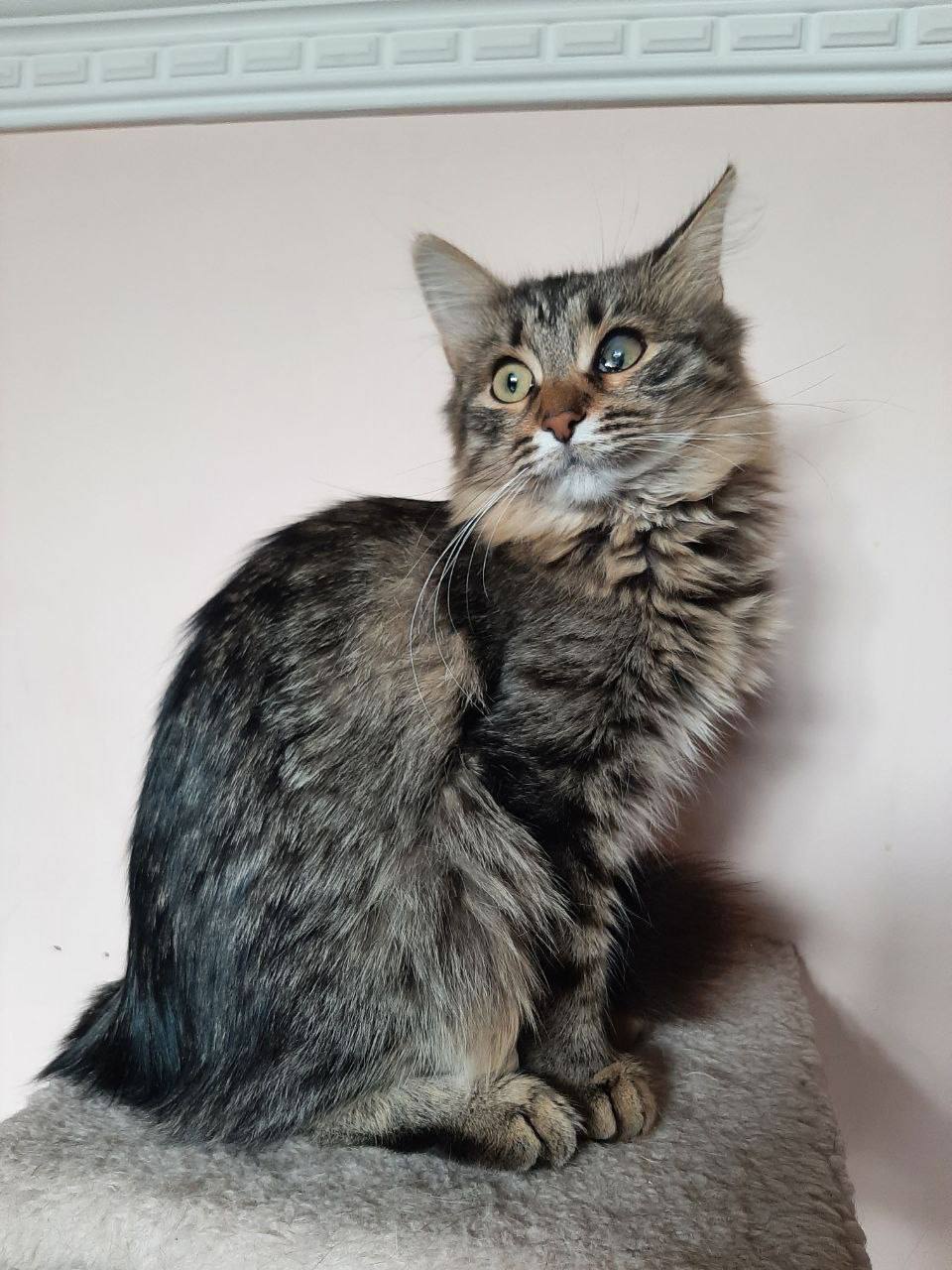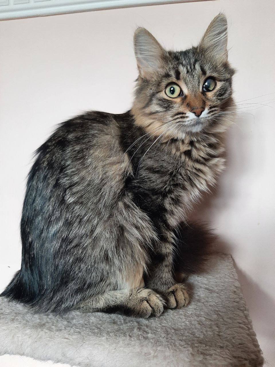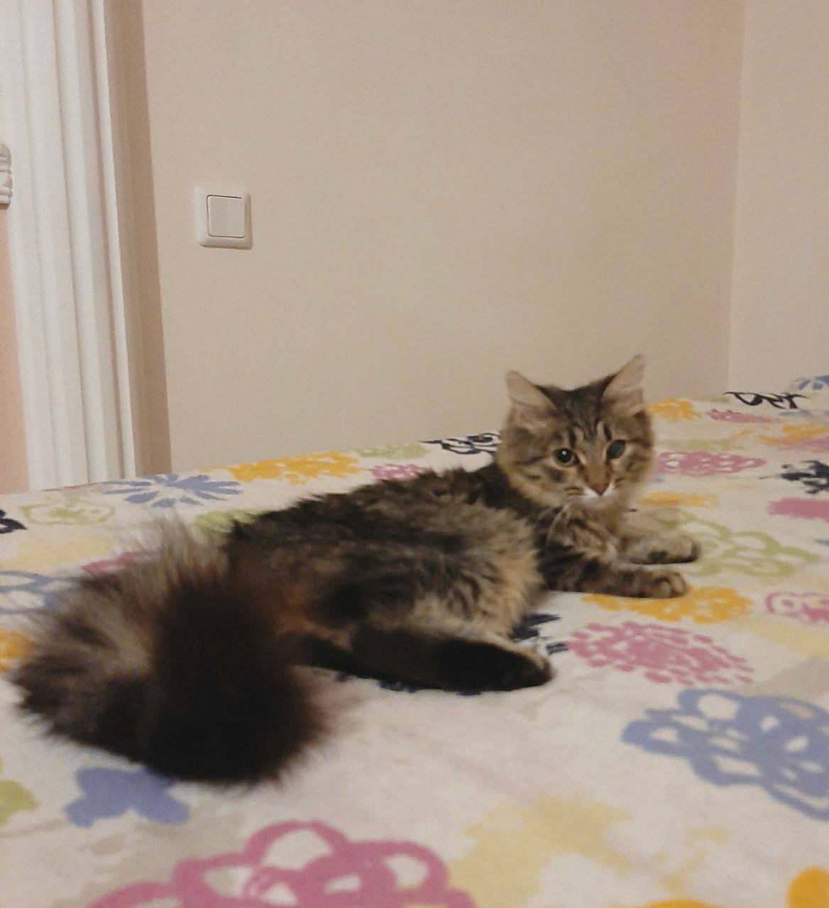 Сейчас Пальме 7 месяцев. Она абсолютно домашняя, здоровая, привитая и стерилизованная девочка.