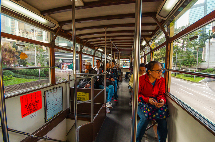 Проезд стоит 2,3 гонконгских доллара, примерно 19-20 рублей. Монеты бросайте в кассу. Готовьте мелочь заранее, ведь сдачи никто не даст. Выход через переднюю дверь.