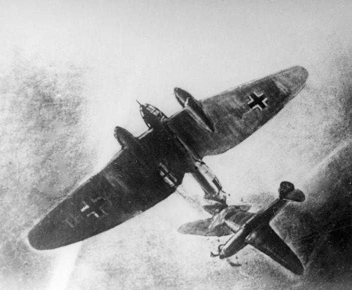 Курская битва Хотя битву под Курском справедливо считают танковым сражением, битва в небе была не менее важной. Люфтваффе оказывали своим танковым дивизиям очень ценную поддержку с воздуха, но военно-воздушные силы Красной армии в конечном счете доказали свое превосходство в воздухе. Боевые действия советской авиации в обороне под Курском получили значительно больший размах, чем в оборонительных операциях Сталинградской и Московской битв. Особенно яростными битвы стали в районе города Изюм, где наши войска форсировали реку Северский Донец и теперь вели тяжелые бои на ее правом берегу. Немецкие бомбардировщики группами по 20–30 самолетов под прикрытием истребителей пытались разбомбить переправы и задержать продвижение наших войск. Авиабои во время Курской битвы отличались невероятным накалом и героизмом советских летчиков. По воспоминаниям Георгия Баевского: "15 августа, прикрывая свои войска и переправу в районе Изюм, «в тяжелом воздушном бою с 80-100 Хе-111 и Ю-88,16–20 Ме-109ф», как записано в летной книжке, я сбил Хе-111, «расход боекомплекта 380 ШВАК». И опять среди истребителей противника были «охотники». В этот же день шестерка Ла-5 под командой одного из лучших наших летчиков, ветерана полка командира 3-й эскадрильи гвардии капитана Н.П. Дмитриева, прикрывая переправы, вела тяжелый бой с истребителями противника. Внезапно — а в бою все случается внезапно — яркая вспышка перед самолетом и режущая острая боль в глазах на какие-то доли секунды выключила сознание Николая Дмитриева. Пламя охватило весь самолет, он вошел в крутой штопор и на дачу рулей не реагировал. Дмитриев с огромным трудом покинул свой Ла-5, «мессеры» пытались расстрелять парашютиста в воздухе, но наши истребители надежно прикрыли командира, который, снижаясь, стал срывать с себя горящую одежду. Он упал на передовой, в расположении своих войск, обожженный, без сознания. На месте левого глаза была кровавая рана. Пехотинцы доставили Дмитриева в ближайший полевой госпиталь, оттуда он был отправлен в Москву".