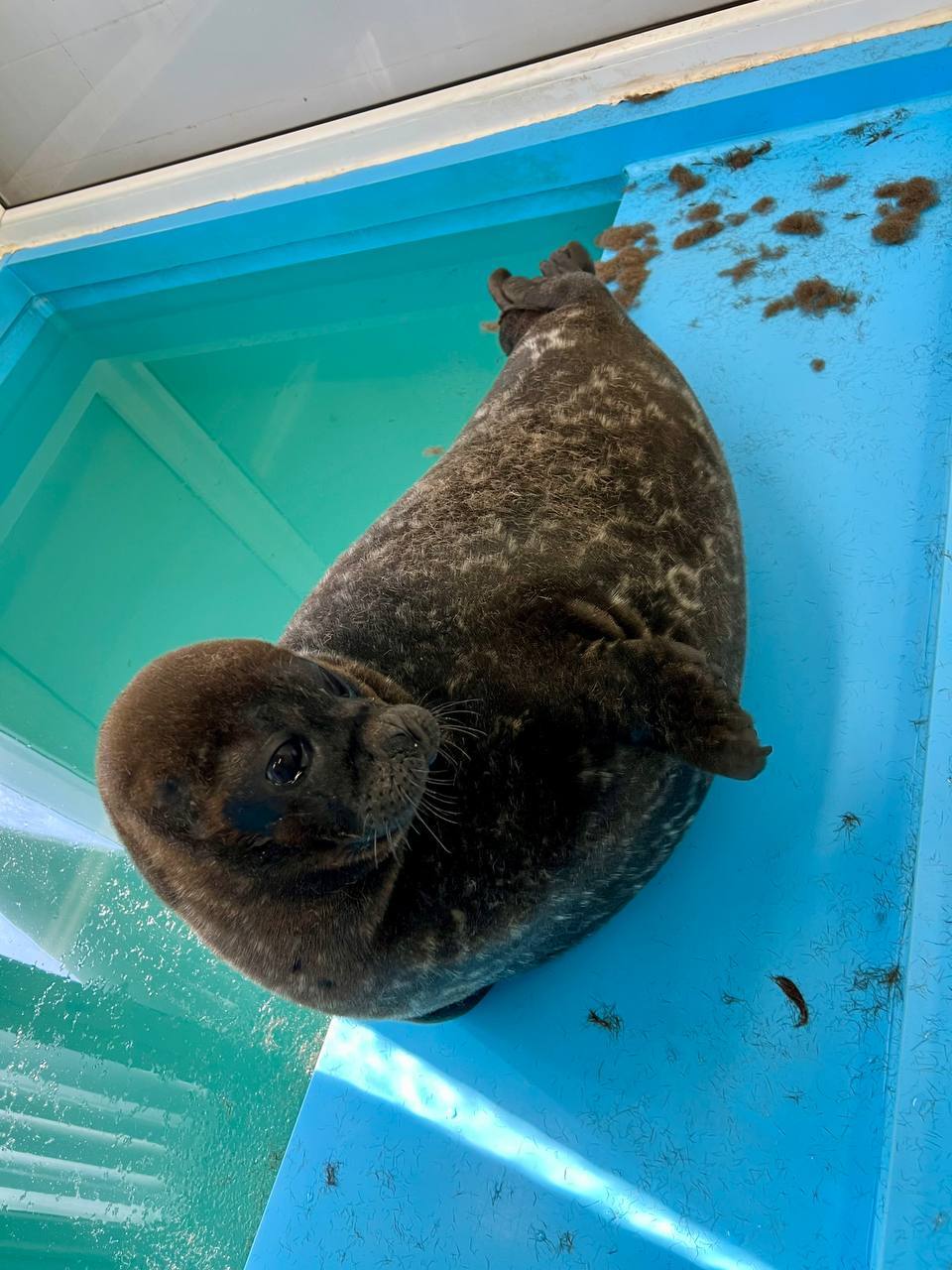 Знаменитый ластоногий Петербурга нерпа Крошик меняет зимнюю шубку на летнее одеяние