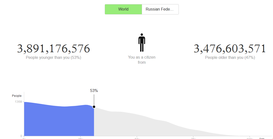 Интересный сайт с инфографикой о том, какое место в популяции занимает человек, исходя из даты рождения и пола.
