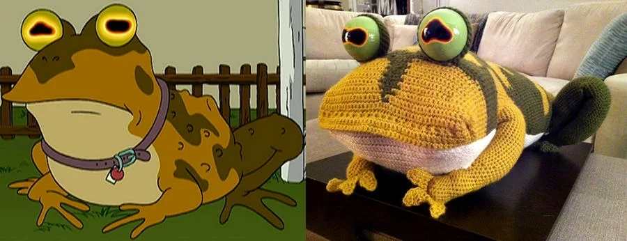 Вяжу новых, толстых, жадных шерстяных жаб. Мадам получилась крайне упитанная. Наверное, как и любая жаба, которая душит- ни с кем не делилась и всё хранила под собой. Теперь сидит себе на полочке и радуется своим богатствам, которые накопила.