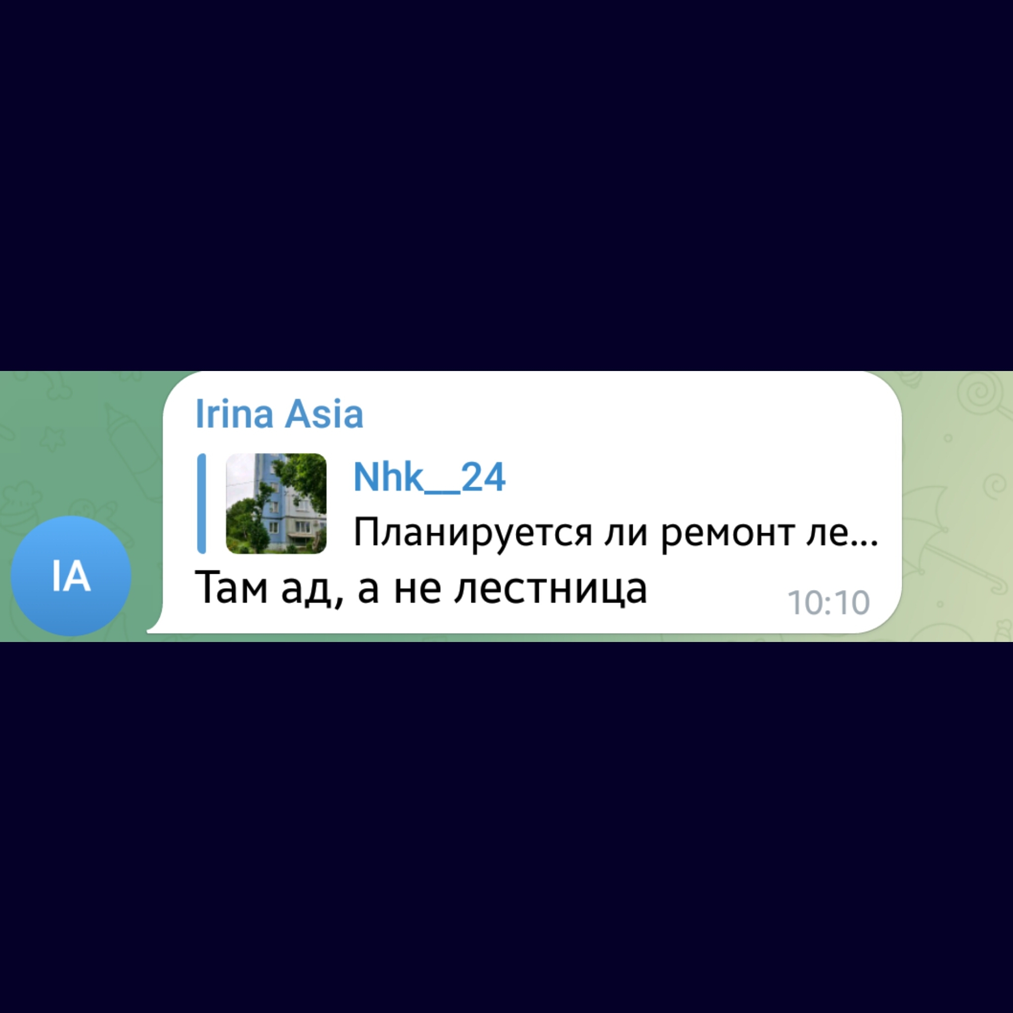 Я вчера гулял по городу Находка, в микрорайоне Южный, близ самого большого ТРК в городе под названием "Мега", и у гостиницы "Горизонт" разговорился с местными жителями, по поводу лестницы в их районе. Снял коротенькое видео и направил его сегодня утром в официальный телеграм-канал Администрации города Находка.