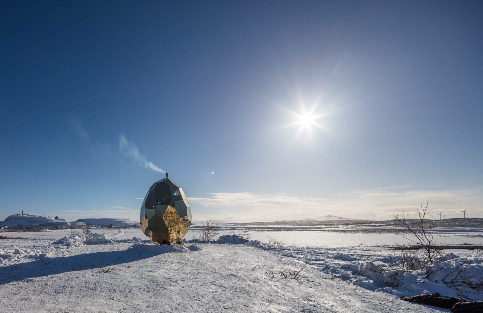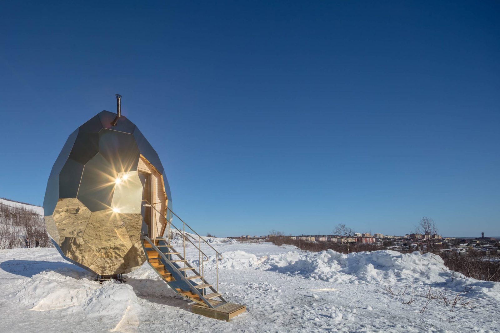 В самом северном городе Швеции — лапландской Кируне — среди снегов и гор стоит необычная сауна Solar Egg (рус. «солнечное яйцо») работы архитектурного дуэта Bigert & Bergström. Ее форма не только обращает на себя внимание оригинальностью, но и является неочевидным, но важным символом городского и даже государственного значения.