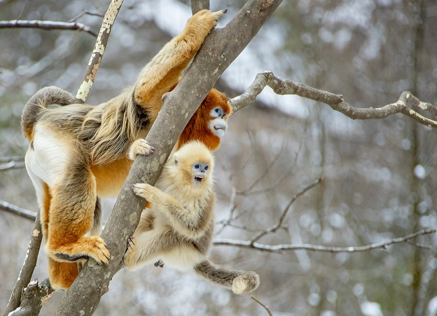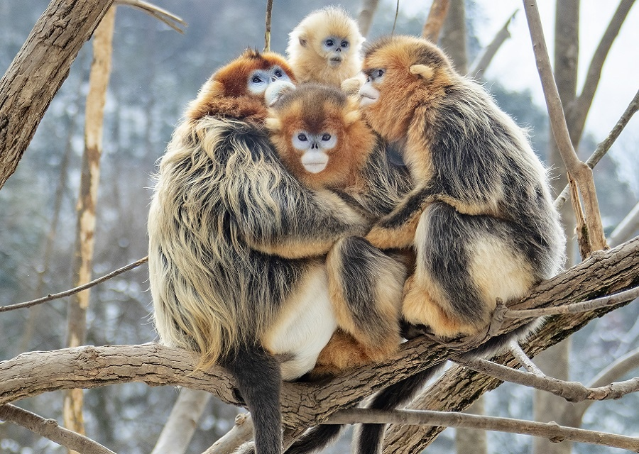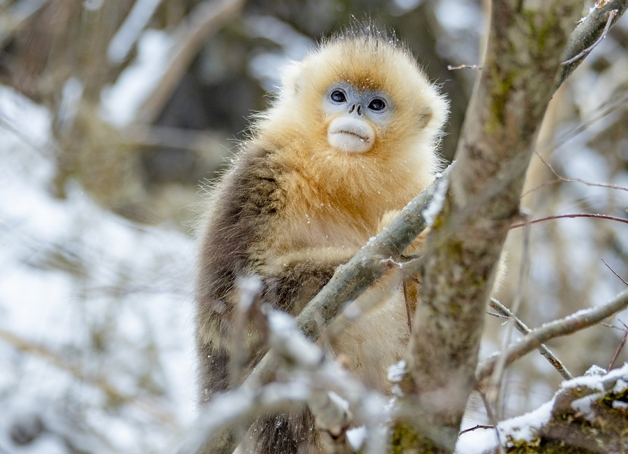 Чемпионом по очаровательности среди животных Китая, да и не только, вполне заслуженно является панда. Черно-белые мишки затмевают своим обаянием множество других, не менее достойных умиления животных. Знакомьтесь – рокселланов ринопитек (Rhinopithecus roxellana), он же золотистая курносая обезьяна, редкий обитатель горных лесов Центрального и Южного Китая.