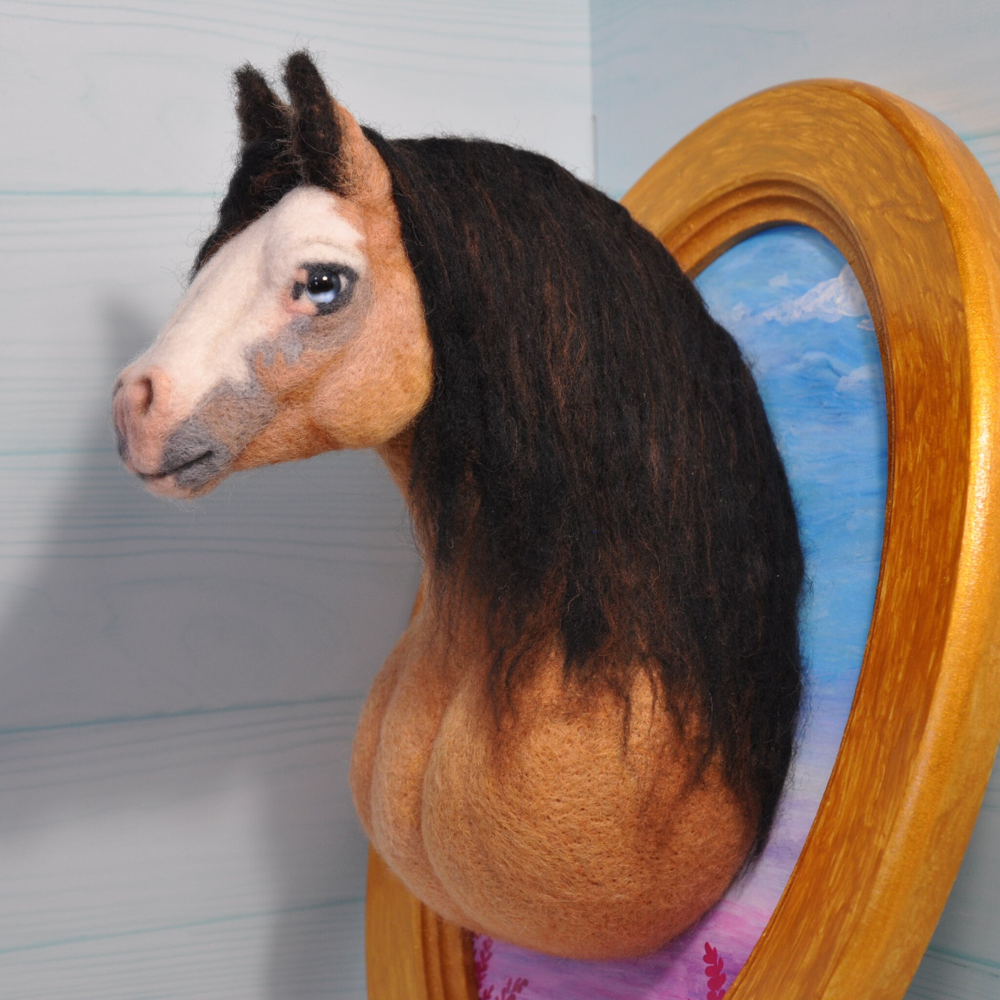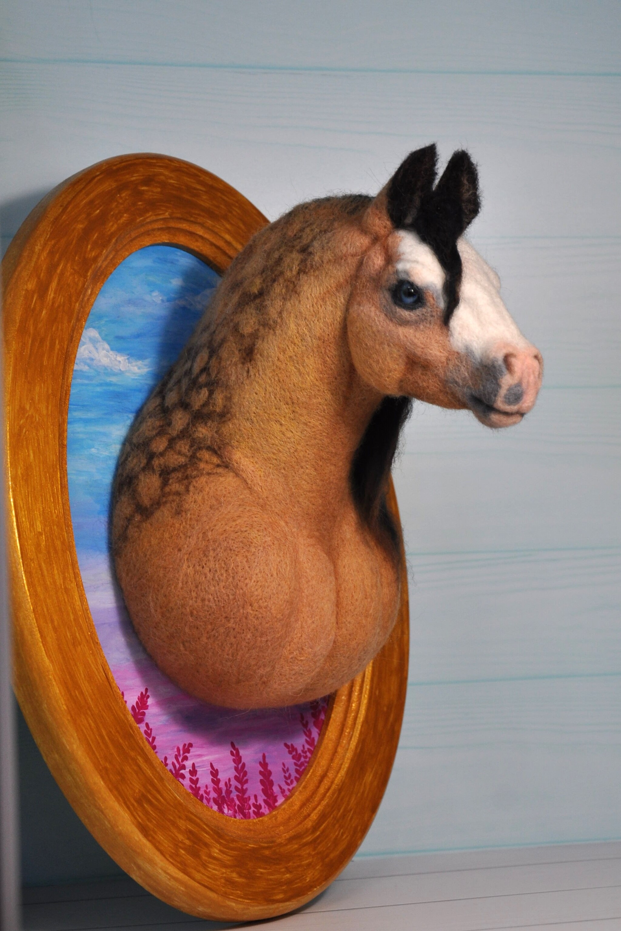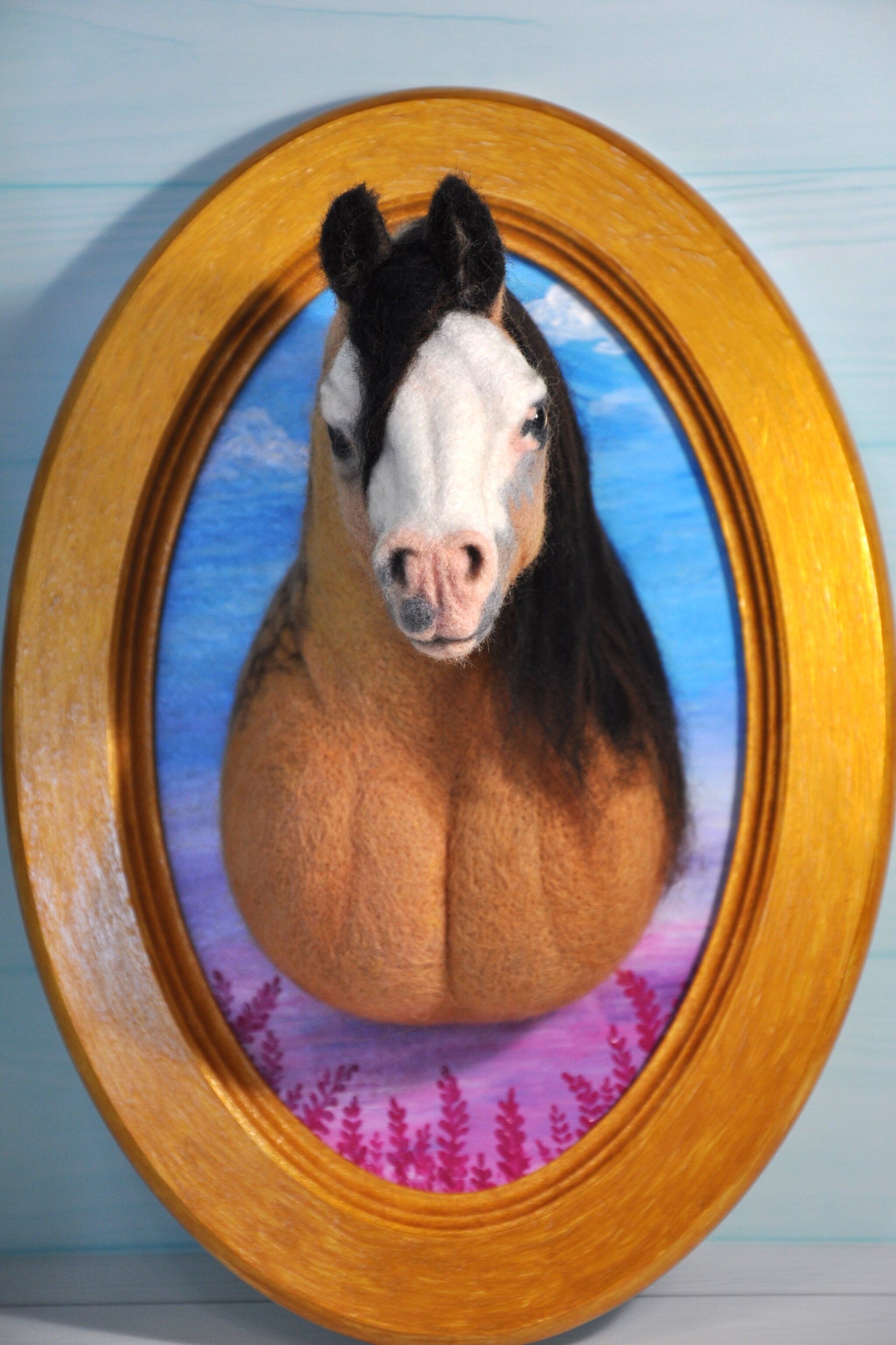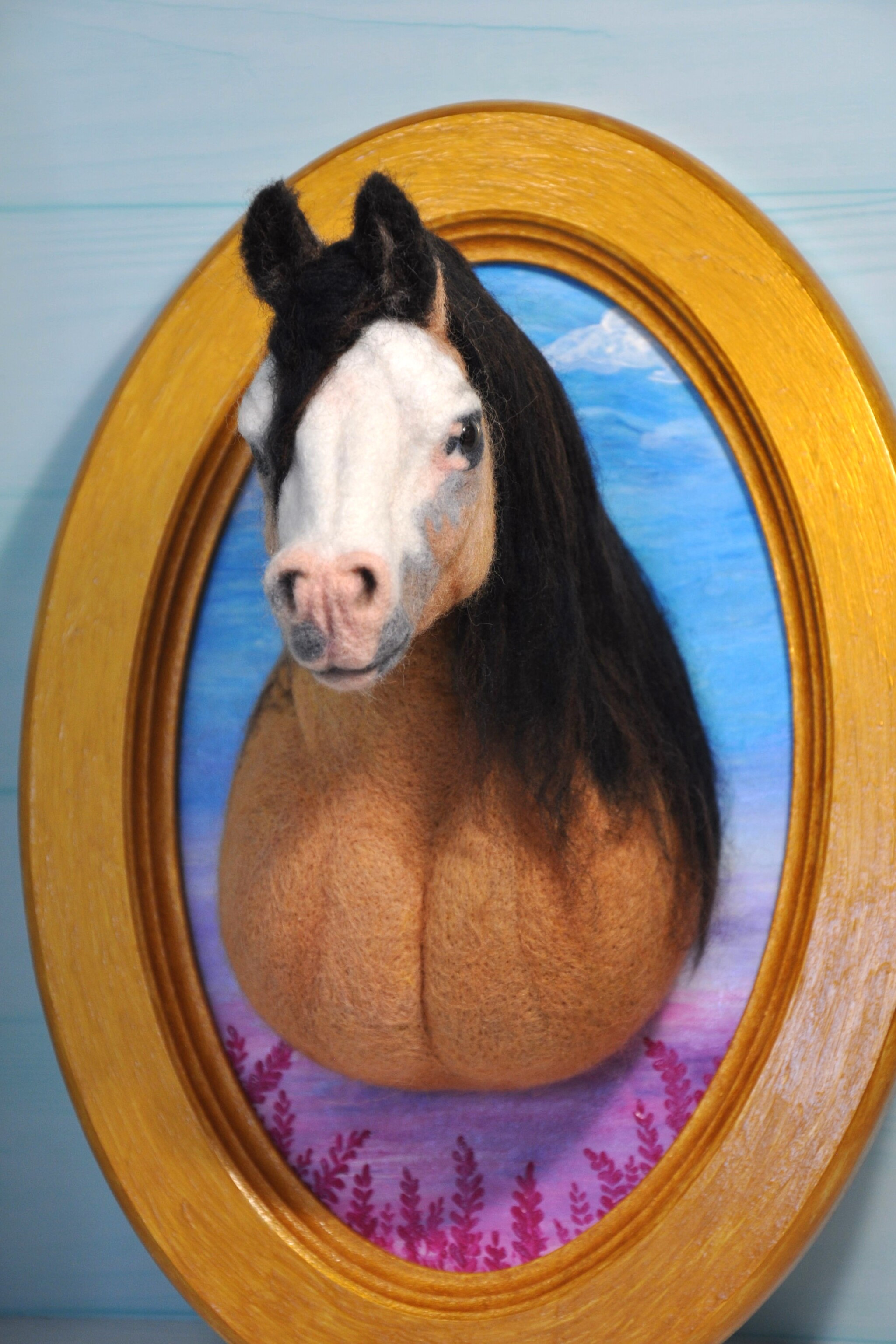 В подарок для Titanium Stud Farm, небольшой фермы, где живут чудесные кони породы тинкер, сделала из шерсти бюст великолепного жеребца Hard Rock Hallelujah)