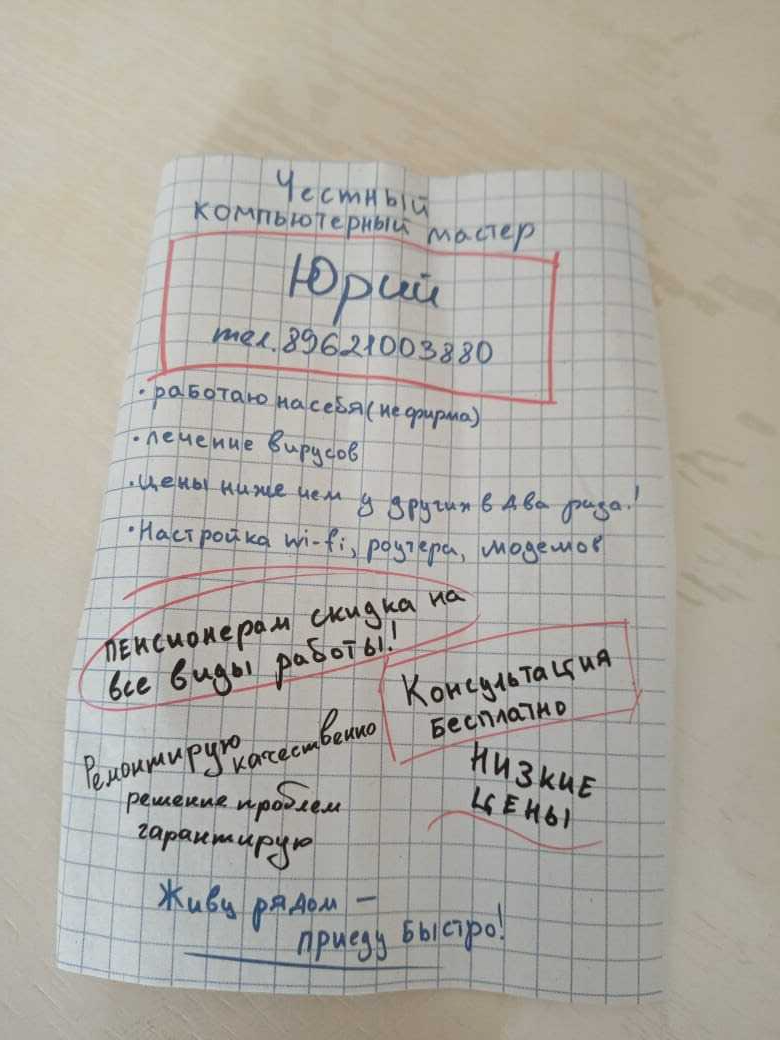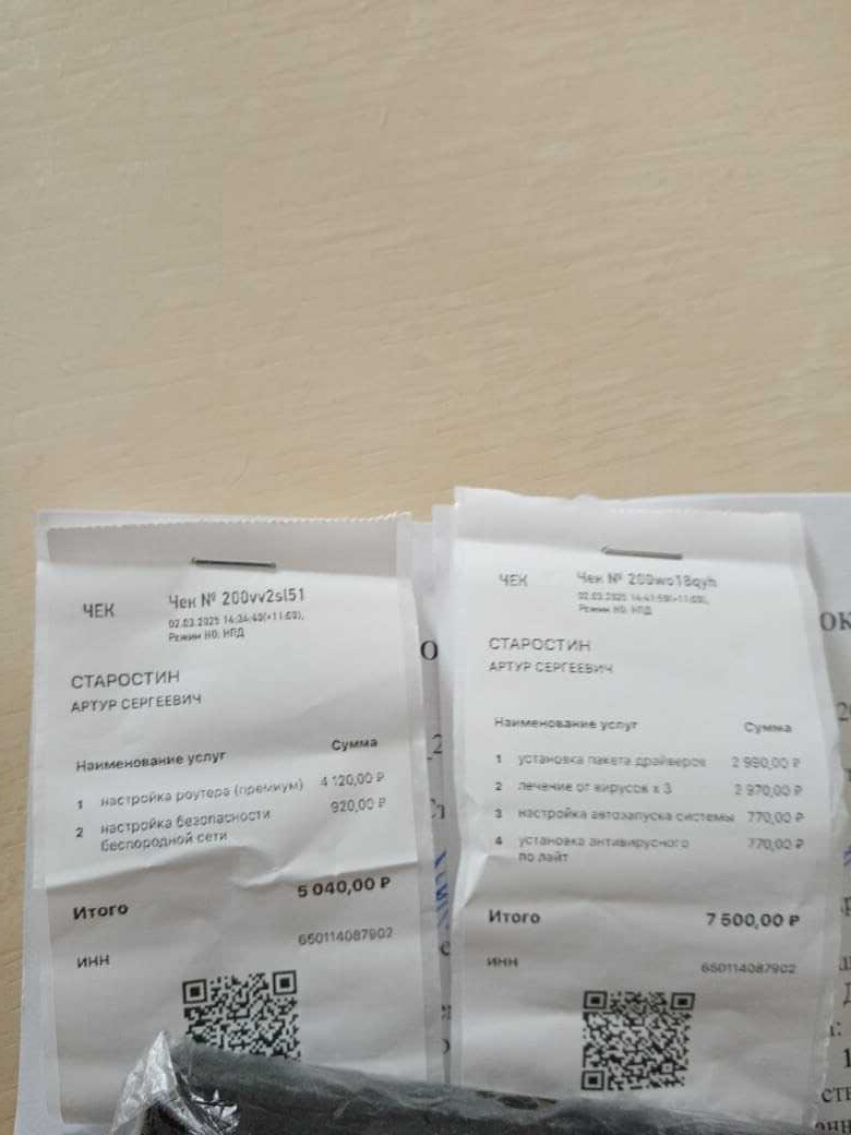Пришёл парень, который часа полтора просидел над ноутом. Колдовал с роутером, звонил на горячую линию интернет провайдера. По итогу выставил счёт в 12500 (это со скидкой для пенсионеров).