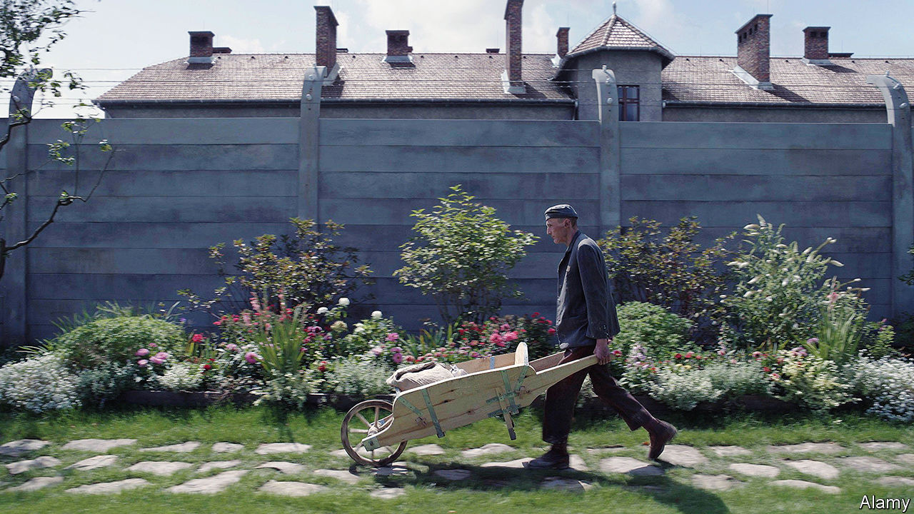 Абсолютная бытовуха, рутина, будничность, порядок и аккуратность, детские забавы и глупость, банальные ссоры, сплетни и смех, цветущий сад и пышная зелень, а над стеной крыши бараков и газовых камер, где каждый день уничтожают партии "материала". Впрочем, что оставили русские, евреи и все народы, признанные низшими и недостойными земного существования, всё идёт на пользу амбициозной семье коменданта. И вот уже женщины примеряют платья, оставленные утилизированными. Между собой они шутят о том, как на полной немке порвалось платье от какой-то слишком худой еврейке.