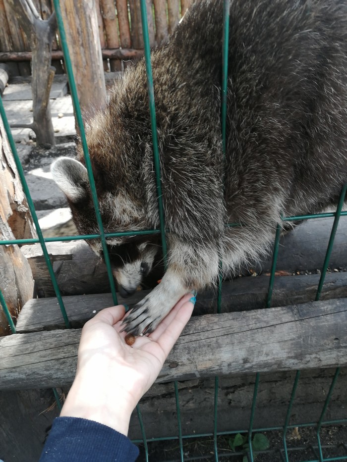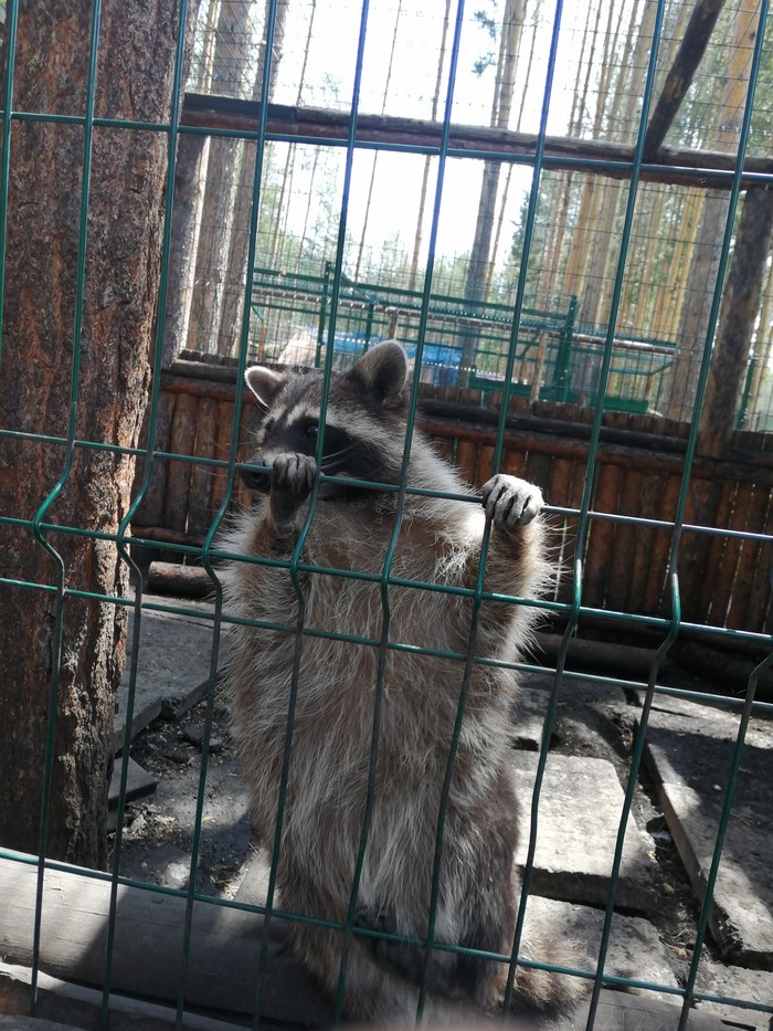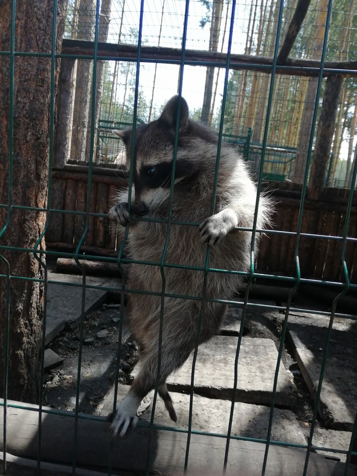Есть там Енот без 1 лапки, сказали, что он сам виноват попал в капкан. Очень жалко его, тяжело передвигаться ему, падает на бок.