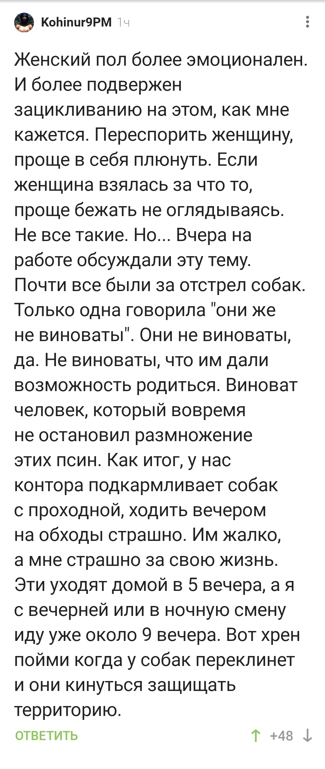 42 Wellikan Зоошиза какого пола? 1 месяц назад #comment_372093344 Радикальная зоозащита Бродячие собаки Комментарии на Пикабу Длиннопост Негатив Скриншот Ещё 0