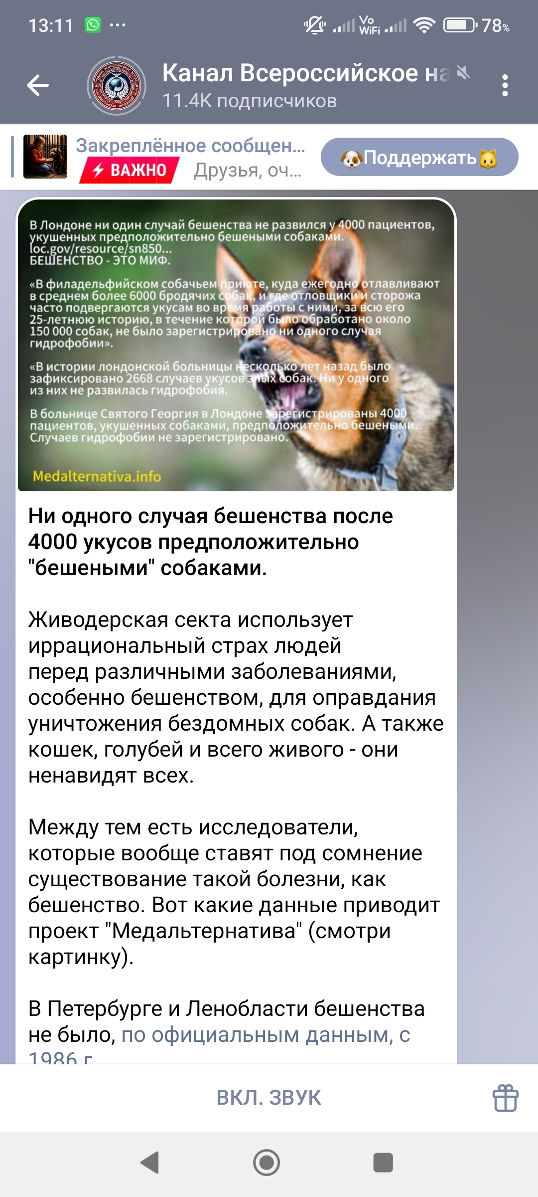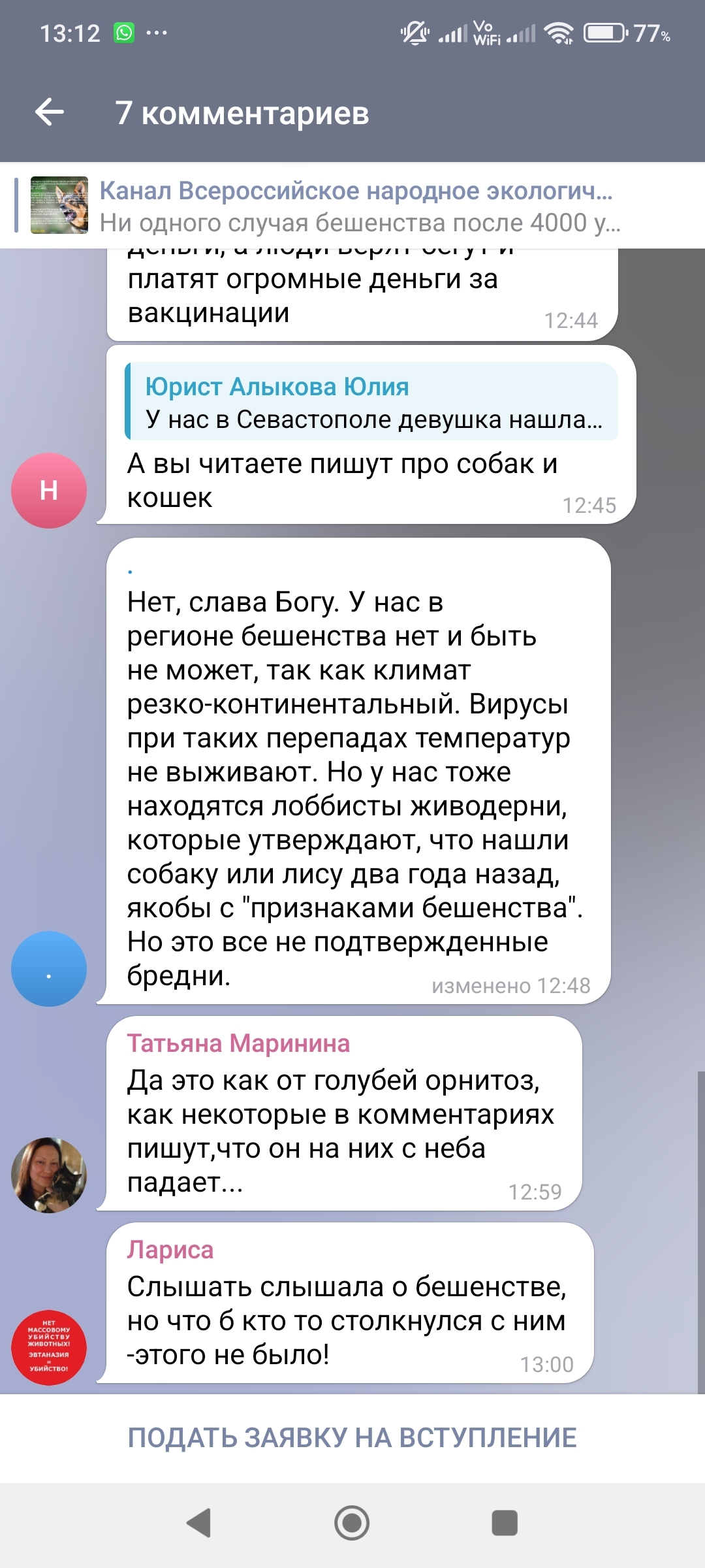 По мнению зоозащитников, если ни кто из них не видел заболевших бешенством, значит его не существует. А вакцинация это все развод на деньги) Ссылку на канал этих товарищей прилагаю.
