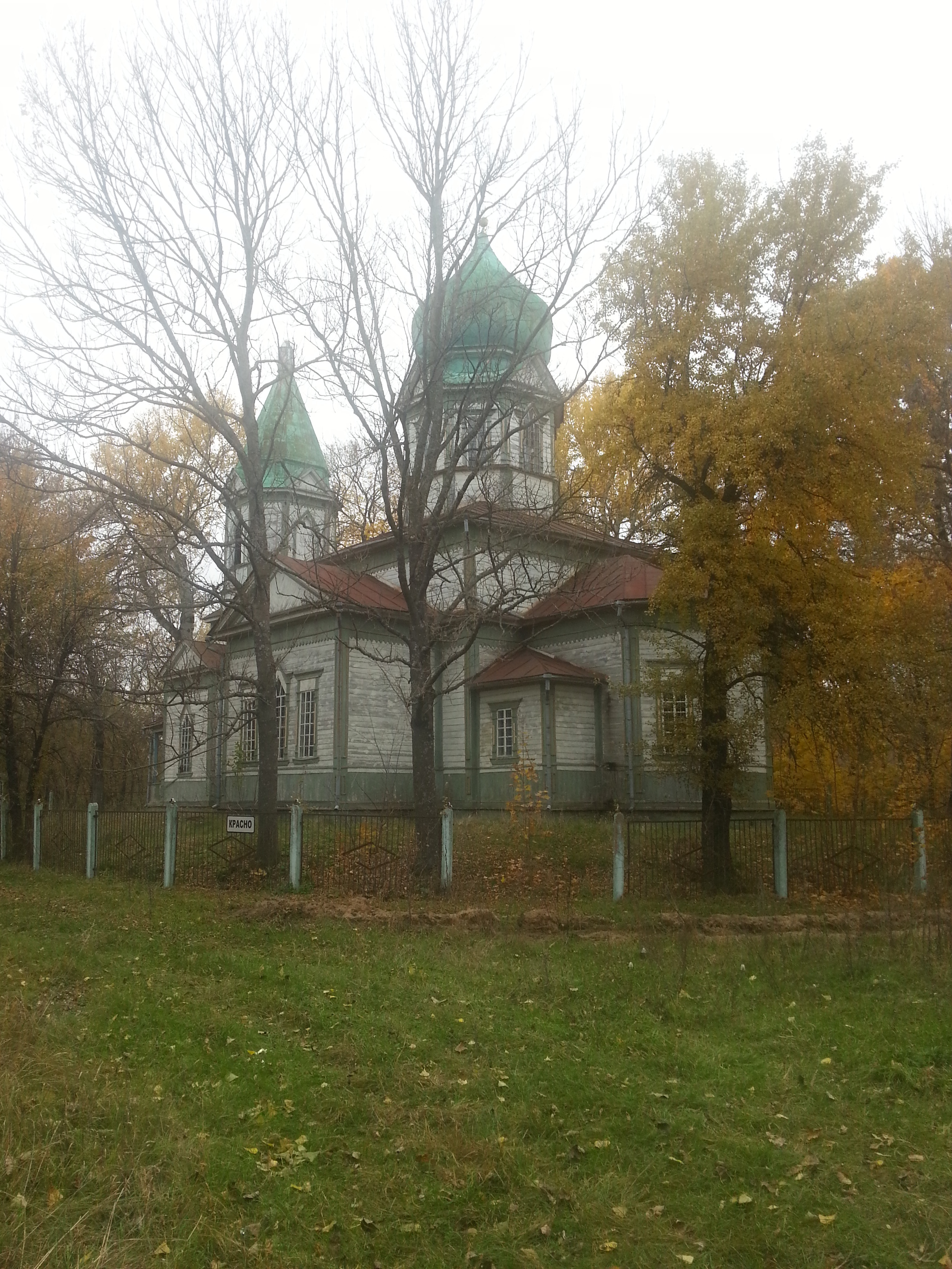 Затем мы посетили село Красно, в котором стоит деревянная церковь, послужившая, как я понимаю, прототипом для затопленной церкви в игре "Чистое Небо".
