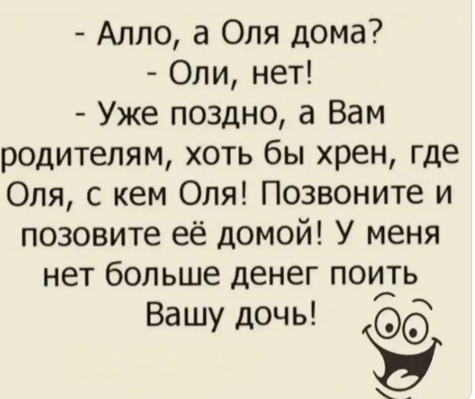 16 G00RT Баяны Зовите дочь домой! 1 месяц назад Юмор Картинка с текстом Алкоголь Отношения Родители и дети Анекдот Зашакалено 7 Ещё 0