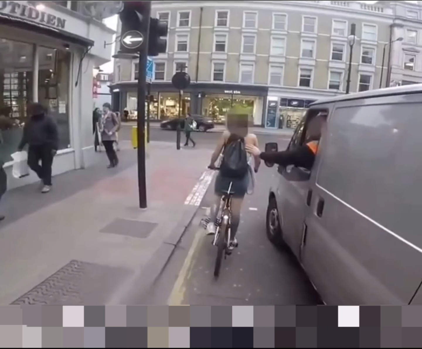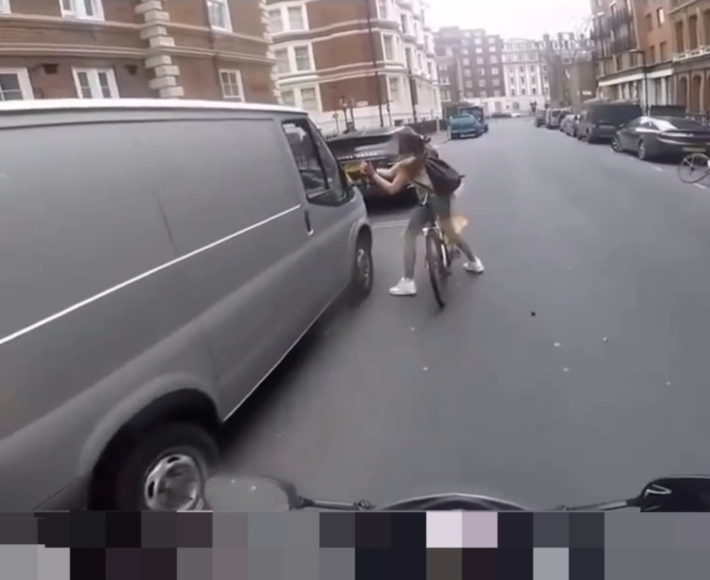 Уезжая водитель кидает пару фраз, которые затрагивают её родителей и честь девушки. Такое она не всилах стерпеть и девушка догоняет фургон.