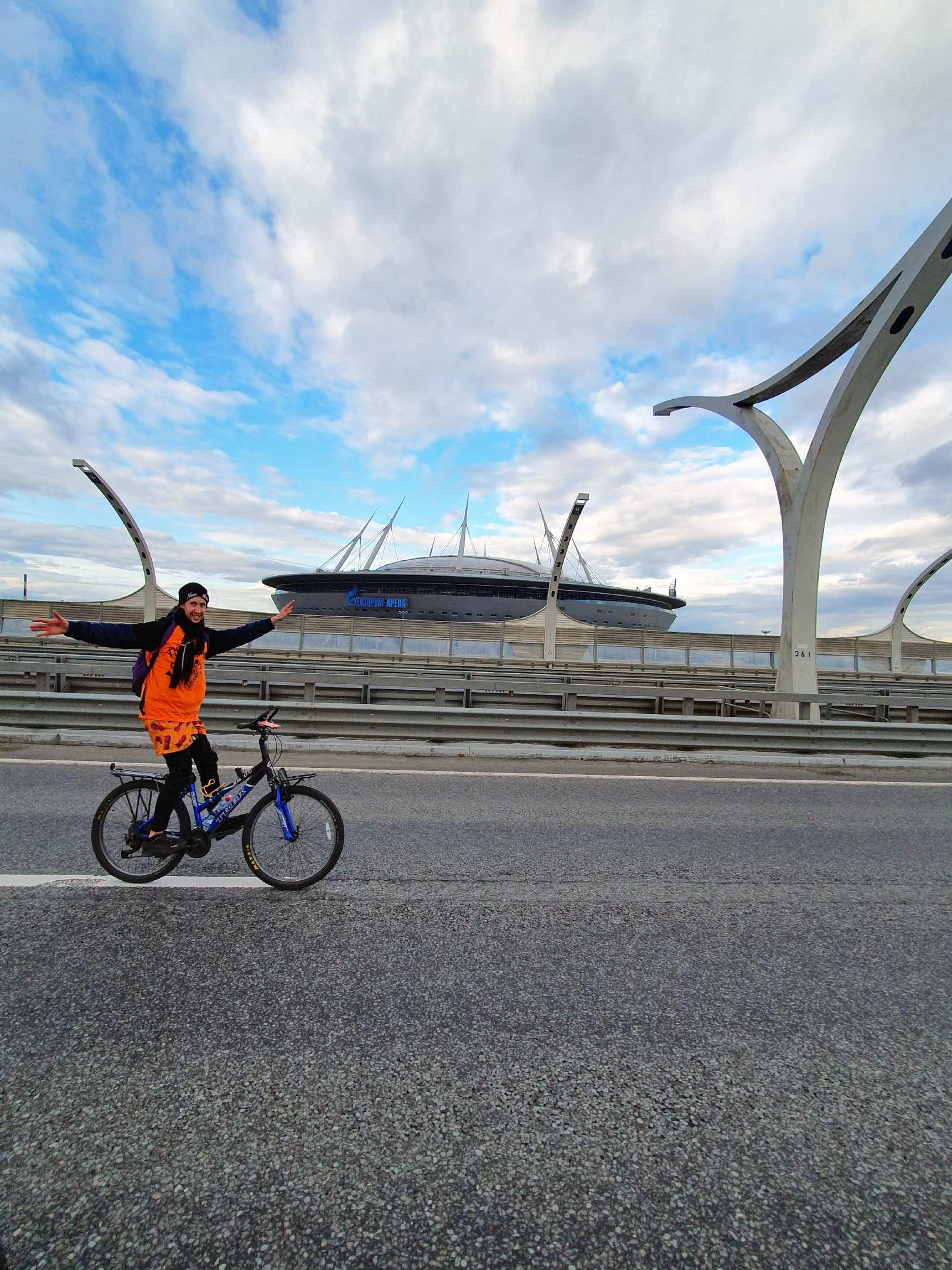 Путь начинается от участка на Богатырском проспекте, идёт вдоль Лахты, Зенит арены, насыпных территорий Васьки с красивыми видами на залив. По пути проезжаем 2 моста, есть места где нет высоких ограждений и можно наслаждаться видами финского залива.