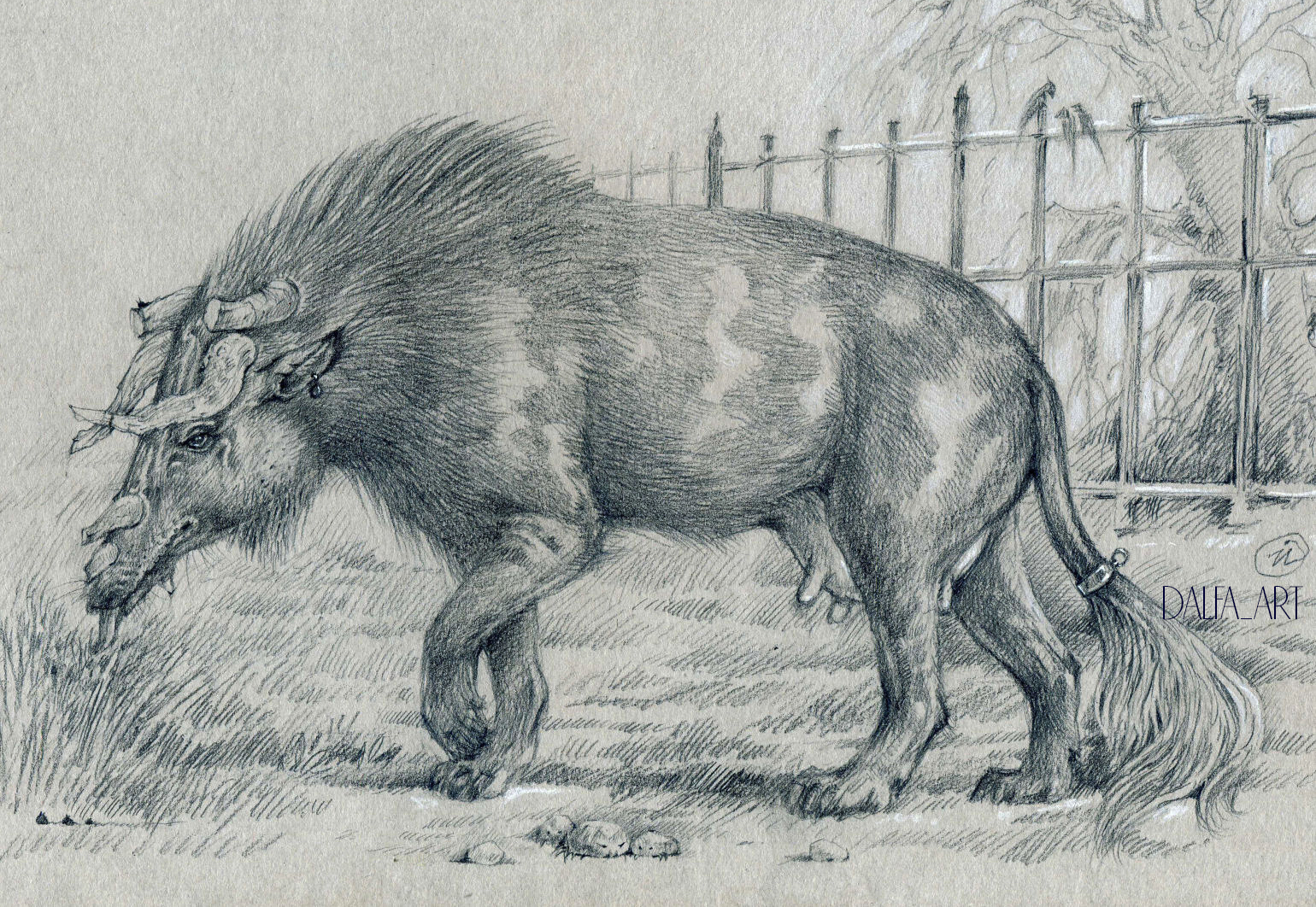 В общем, поотрывалась я для книги (всё те же "Искатели прошлого", что и в предыдущем посте) в духе Брема. Часть деталей просто выдумывала, конечно, как, например, спиленные рога и кольцо для хвоста у носарки - такую чуду-юду явно непросто доить. Часть точно по тексту. Зверушек и насекомых там много всяких, было не скучно.