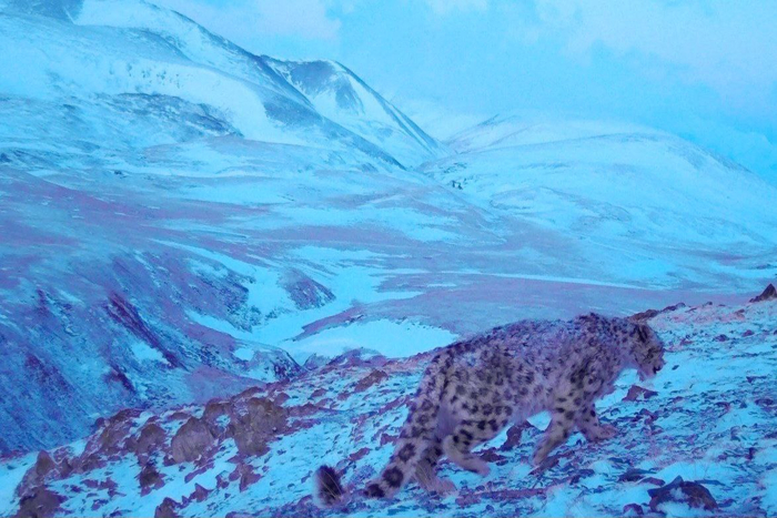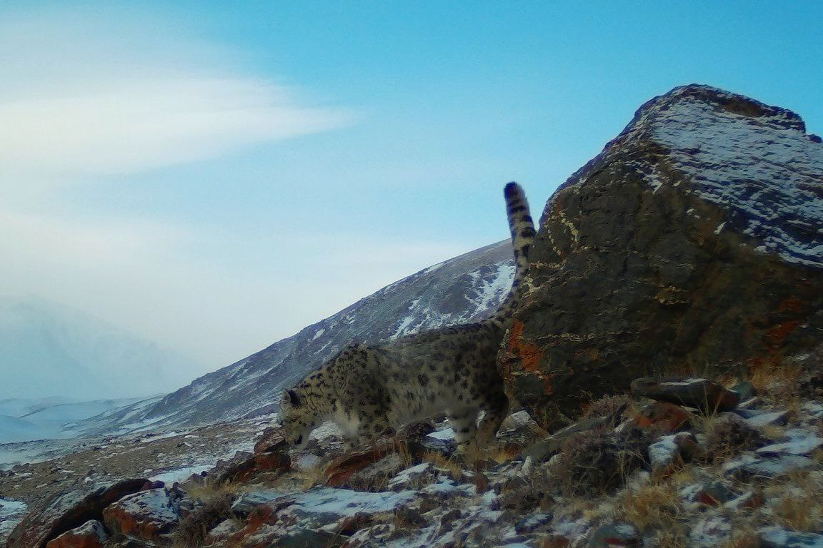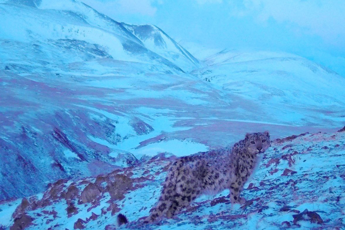 Ирбис фиксируется на одних и тех же точках, но появлялся на кадрах и у хребта Южно-Чуйский, куда он тоже путешествует в поисках пищи и невест.