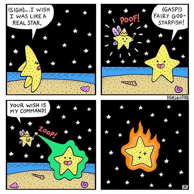 Должна быть какая-то игра слов, позволяющая сказать, что желание было исполнено верно. Как перенос звезды из моря в космос делает её "настоящей"?