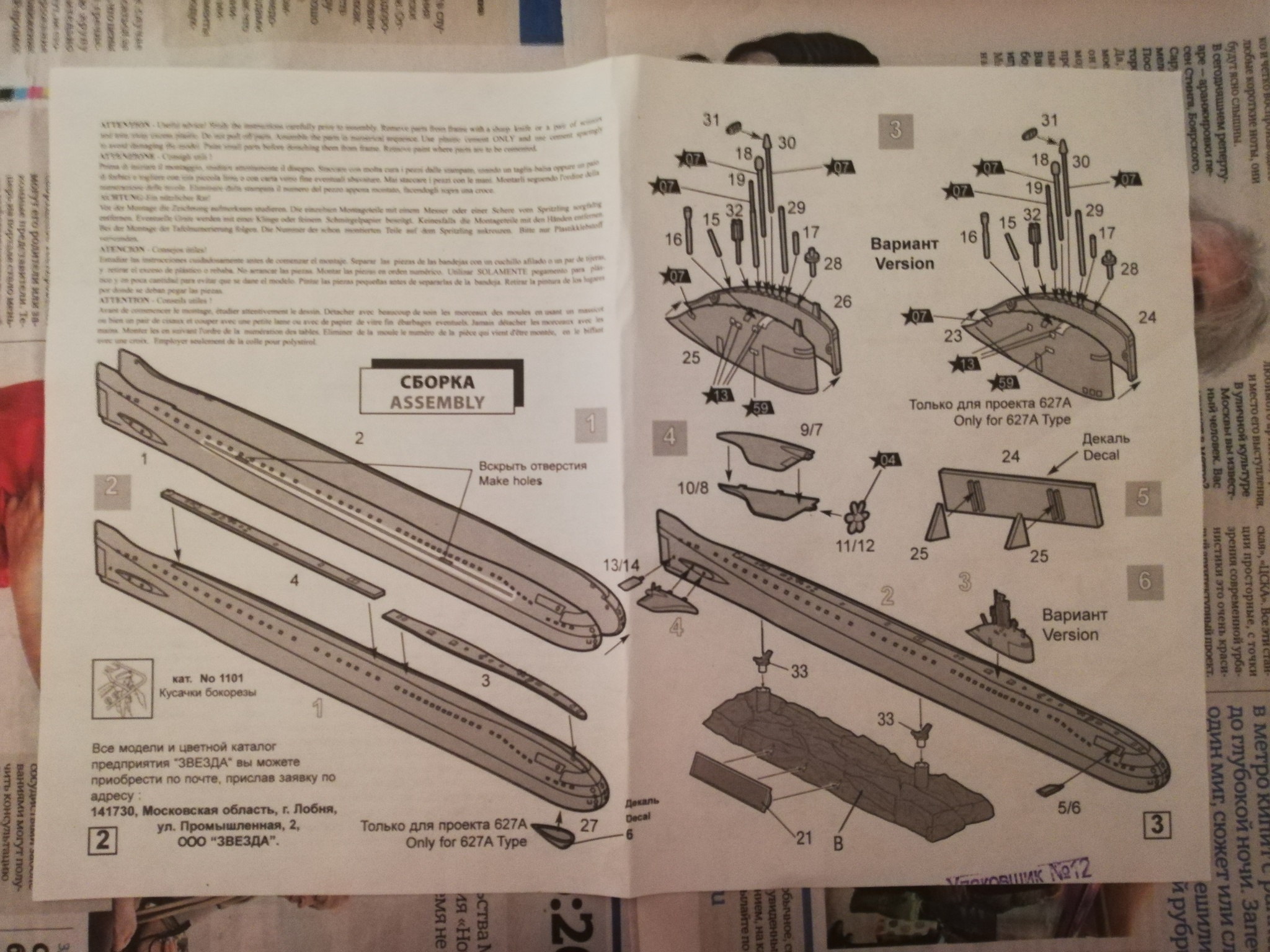 Что меня приятно порадовало в этом наборе, так это общее качество деталей и простота/информативность инструкции. В ней диаграммами описан как сам процесс, рекомендации по покраске (сегодня я буду собирать без покраски), так ещё и есть краткая история этой ПЛ (аж на 6 языках). Фото инструкции прилагается ниже: (История и прочие фичи на обороте, но его я фоткать не стал, чтобы не растягивать)