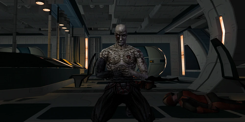 После этого выпилить Митру Сурик, которую почти официально стали звать "последним джедаем" стало делом их чести, и этим занялись два других рукводителя ситхов - Дарт Трея (бывшая училка Ревана из ордена джедаев, переметнувшаяся на темную сторону) и дарт Сион, который буквально был бессмертен - его дух был настолько силен и яростен, что после того, как его убили в первый раз, он буквально заставил свое мертвое изуродованное тело жить дальше.