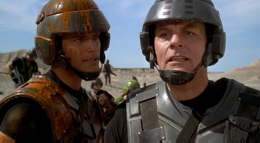 Это я тебя поправил совершенно бесплатно. Ах да, там еще насквозь фашистское общество, не служил - нет гражданских прав, знаки различия - как руны S в SS (присмотритесь на погоны Зима во время тренировок новобранцев), достаточно много цитат то ли из речей Гитлера, то ли из фильмов того времени, не помню уже. Ах да, еще милитаризма дохренища. И на демократию там срали с высокой колокольни=)