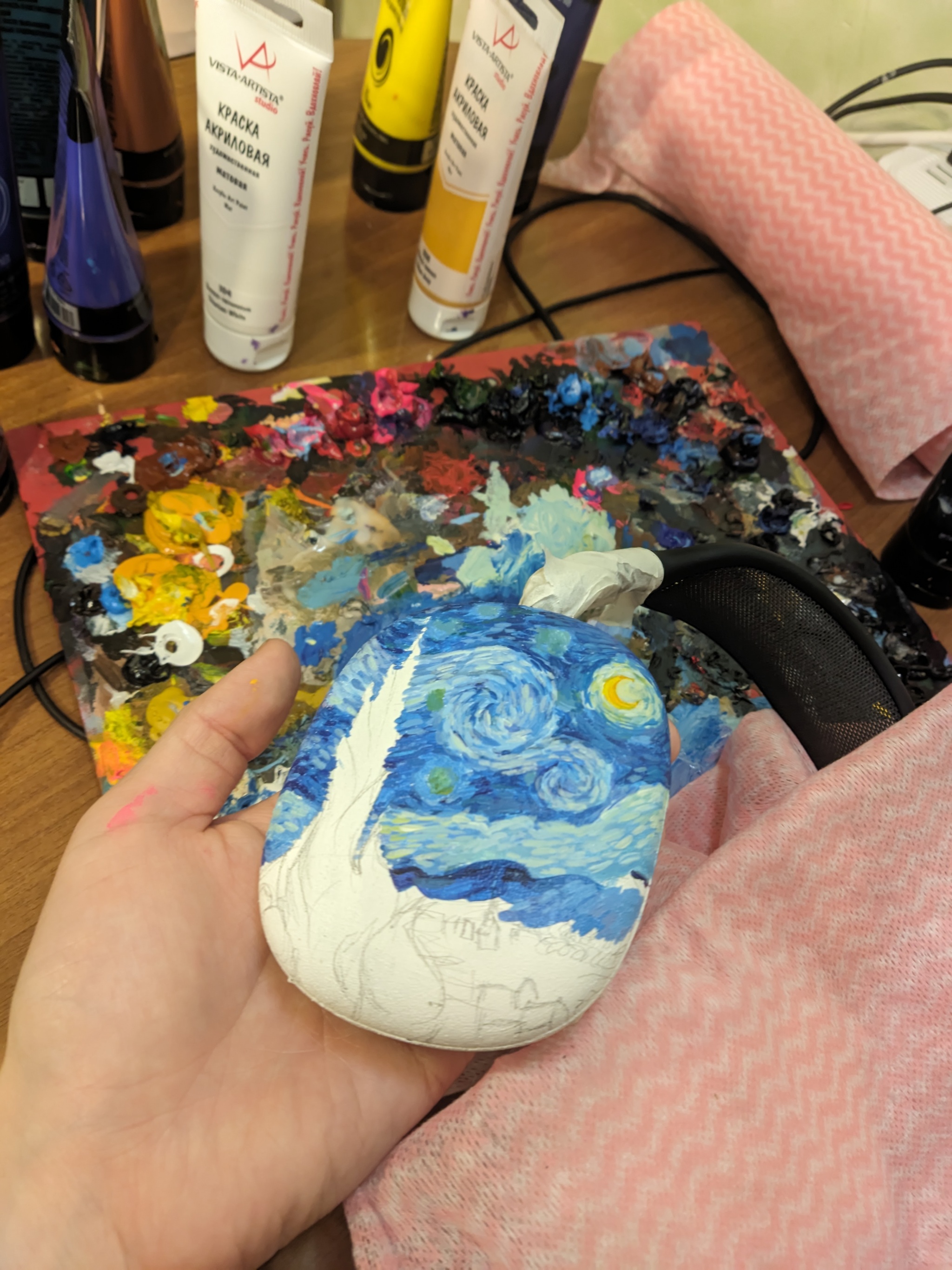 Для надёжности прошлась по наушникам шкуркой и загрунтовала поверхность.