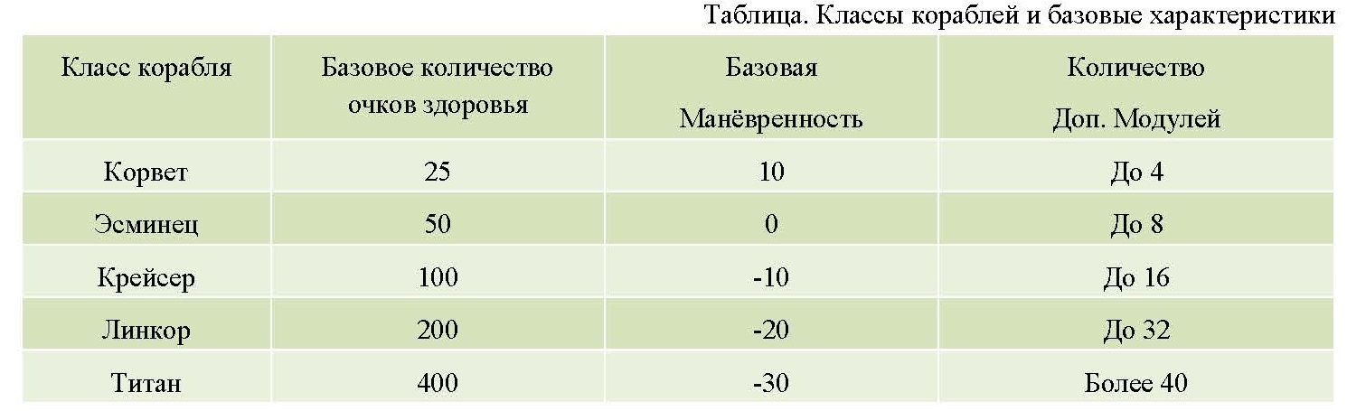 В зависимости от класса корабля меняется его вместимость и манёвренность.