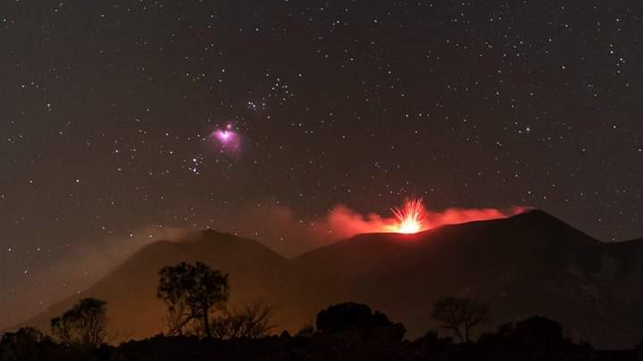 9 Kyudzo2019 Звёзды и вулкан 5 лет назад Большая Туманность Ориона над извергающимся вулканом Этна 😲Италия, остров Сицилия. 28 февраля 2020 года. Автор снимка: Дидье ПлассарПараметры: Sony a7S (без ИК-фильтра), выдержка 2,5 сек. Вулкан Этна Астрономия Космос Фотография Туманность ориона Ещё 0