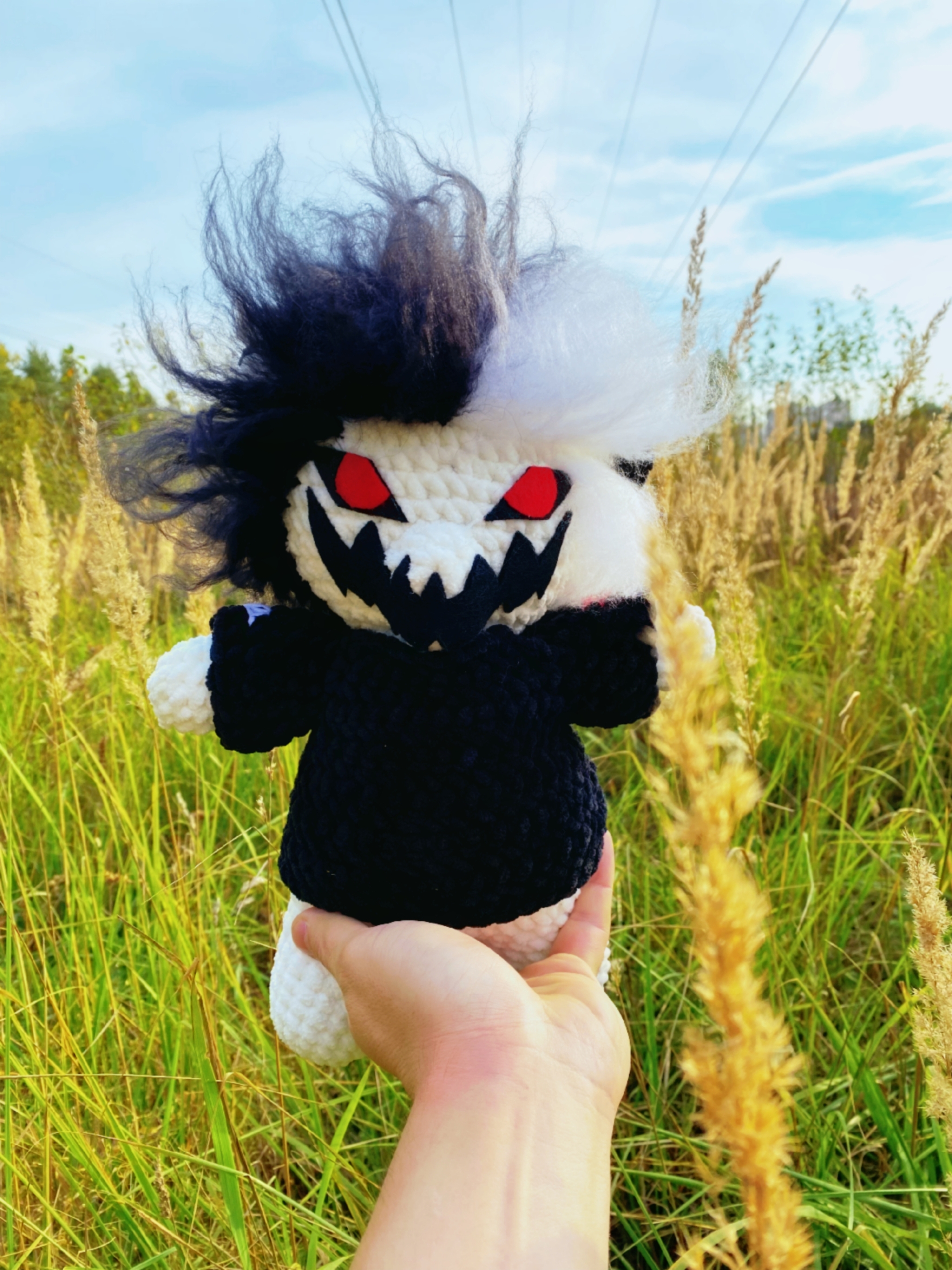 Дни и ночи шли, и в итоге "Zxc cat" был создан. Этот кот был связан из плюшевой пряжи, с огромной и пушистой шевелюрой и большими глазами. Он казался довольно улыбчивым товарищем. Я закончила работу и ждала заказчика, чтобы передать ему эту удивительную игрушку.