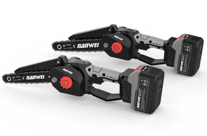 Пила работает от аккумулятора, что избавляет от проводов и увеличивает мобильность. В комплекте идут защитные элементы и смазка для цепи.
