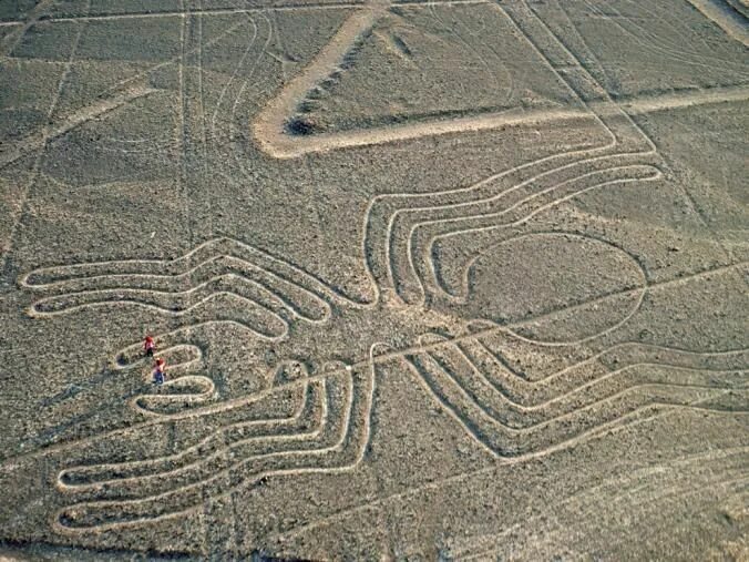 Лишь последующие десятилетия исследований показали, что геоглифы плато Наска расположены на территории в 450 кв. км. Общая протяженность всех линий, их формирующих, превышает 1300 км и постоянно растет по мере обнаружения новых рисунков. Впечатляет и размер индивидуальных изображений. Например, длина «Паука», одного из самых известных объектов плато, составляет 47 метров, «Колибри» (впрочем, по последним данным, это рисунок дрозда-отшельника) – 93 метра, высота человекоподобного «Астронавта» достигает 30 метров. Есть среди символических фигур и вовсе гиганты: «Кондор» длиной больше 130 метров и 188-метровая «Ящерица».