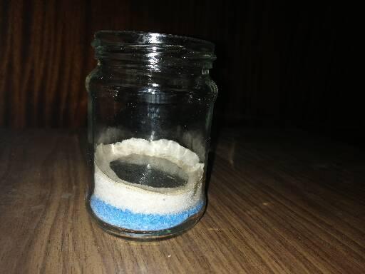 На дно банки насыпаем слой примерно 1 см медного купороса.